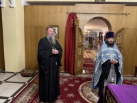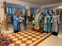В завершение богослужения архиепископ Савва и духовенство совершили молебствие пред списком Иерусалимской иконы Пресвятой Богородицы, за которым поминались ктиторы и благотворители прихода. Владыка обратился к Царице Небесной со словами молитвы.