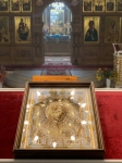 За богослужением в большом числе собравшиеся верующие с благоговением прикладывались к великой святыне, доставленной в собор к празднику, – ковчегу с частицами мощей угодников Божиих преподобных Серафима Саровского, Иова и Амфилохия Почаевских, Ионы Одесского, Илии Муромца, Тимона Надеевского, Гавриила Афонского и других афонских старцев, а также благоверных князей Феодора Ярославского и Романа Угличского.