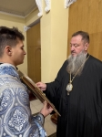 Правящему Архиерею сослужили клирик прихода иеромонах Иоанн (Трайто), проходящий богослужебную практику иеромонах Никанор (Цверкун) и клирик кафедрального собора протодиакон Сергий Афтени.
