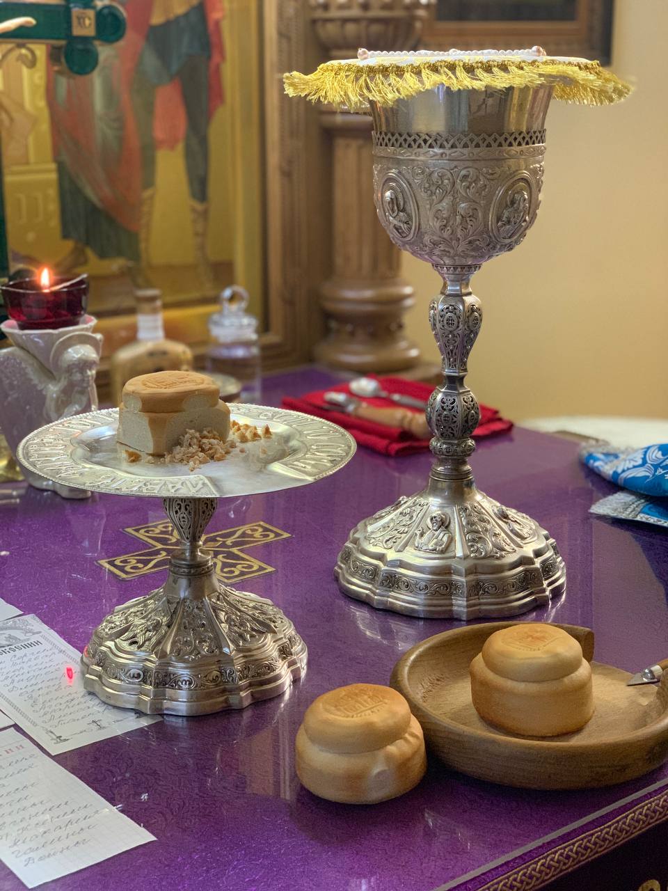 После полиелея архиепископ Савва поздравил прихожан с наступающим праздником и помазал духовенство и мирян освящённым елеем.