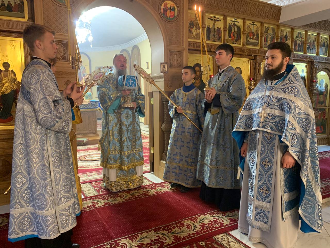 Правящему Архиерею сослужили клирик прихода иеромонах Иоанн (Трайто), проходящий богослужебную практику иеромонах Никанор (Цверкун) и клирик кафедрального собора протодиакон Сергий Афтени.