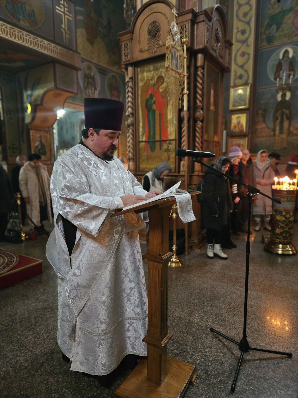 Богослужение прошло в особой рождественской духовной атмосфере, исполненной молитвенной тишины и благодарения Богу за дар воплощения Сына Божия. В этот праздничный день верующие с благоговением возносили молитвы ко Господу, прославляя Его Рождество и молитвенно почитая подвиг святого апостола и первомученика Стефана.