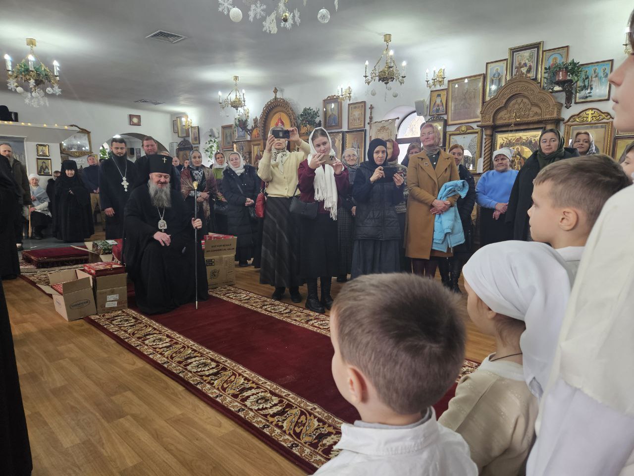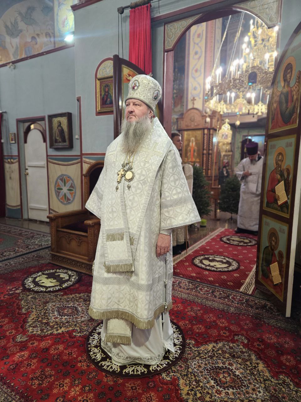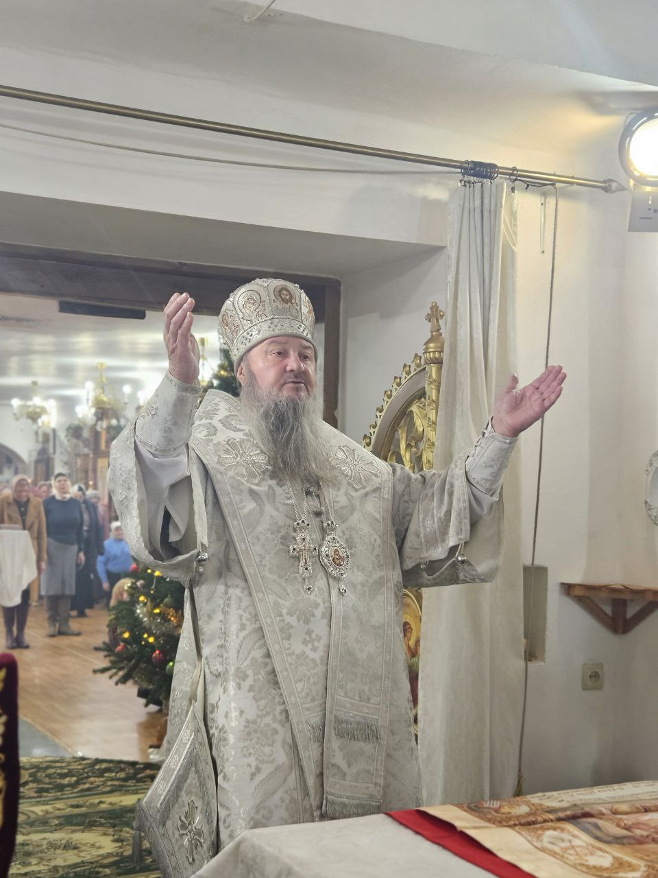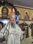 По окончании Божественной литургии было совершено славление празднику Рождества Христова, после чего Его Высокопреосвященство обратился к молящимся с архипастырским словом. Владыка призвал верующих откликнуться сердцем на великую любовь, явленную миру в Рождестве Спасителя, учиться всецело вверять свою жизнь Господу и с упованием предаваться Его благому и спасительному Промыслу.
