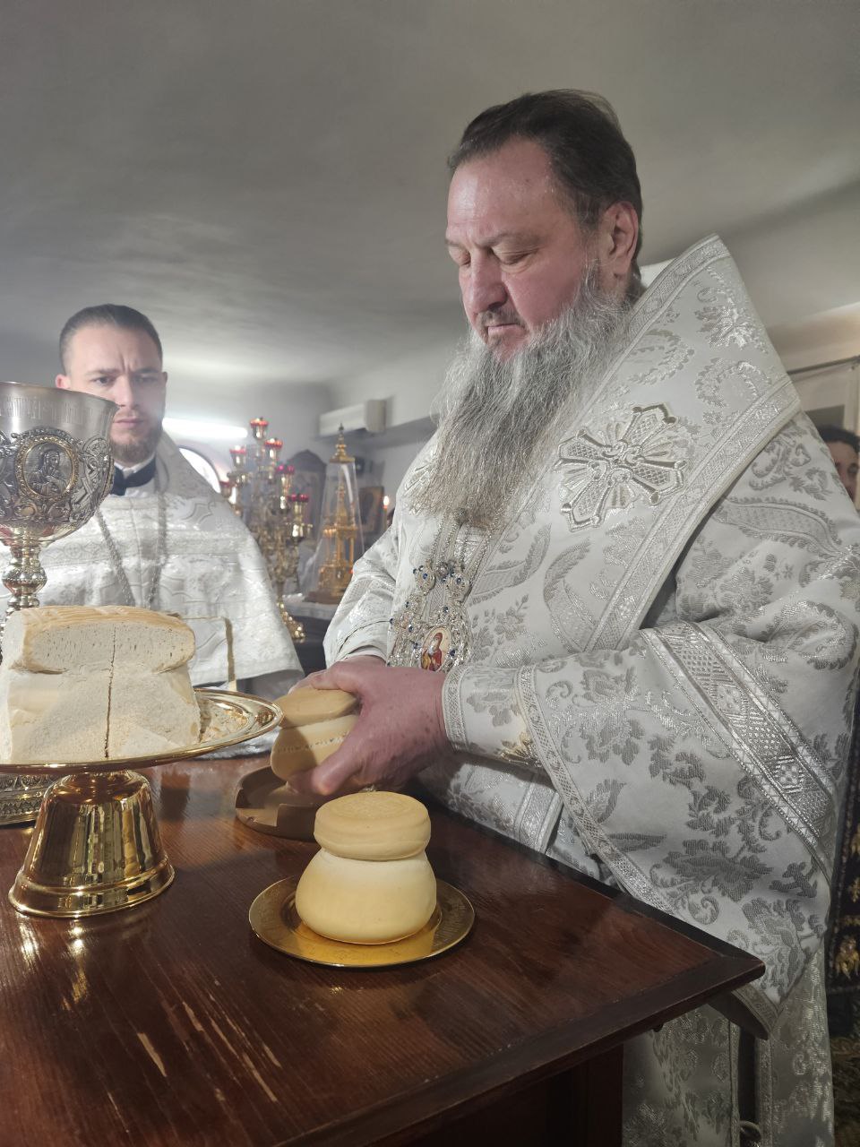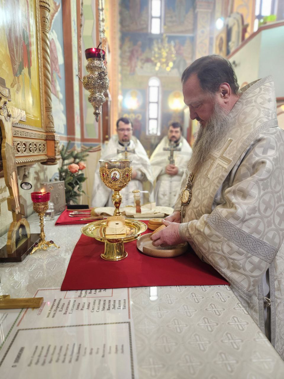 Затем архиепископ Савва помазал духовенство и мирян освящённым елеем. Всем подходившим к помазанию был роздан освящённый за богослужением хлеб, напоённый освящённым вином.