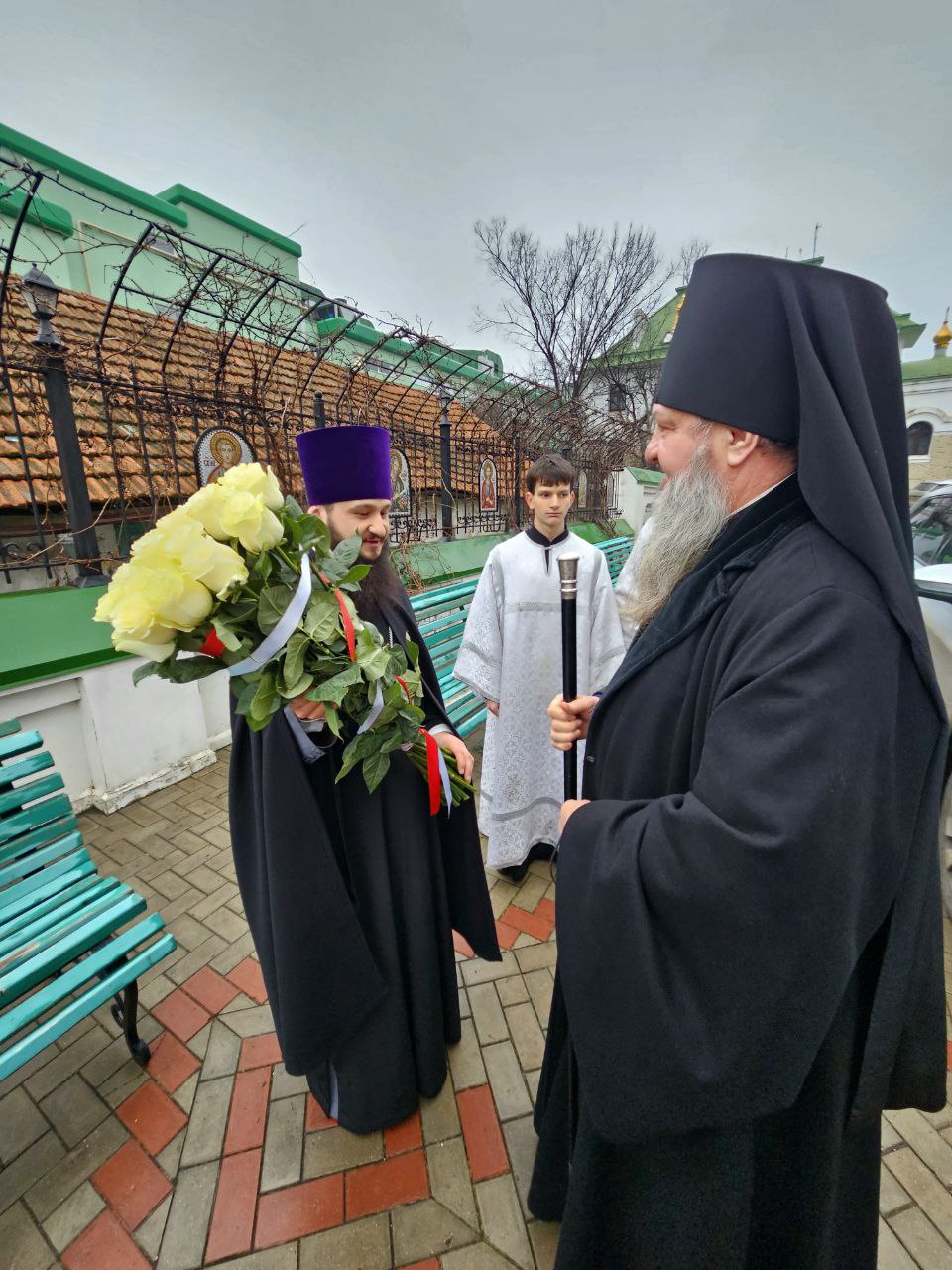 У святых врат обители Правящего Архиерея встречали благочинный Бендерского округа протоиерей Михаил Лунгу, настоятельница монастыря игумения Елисавета (Василаке) с сестрами обители, а также многочисленные прихожане и паломники, собравшиеся испросить архипастырского благословения и разделить радость совместной молитвы.