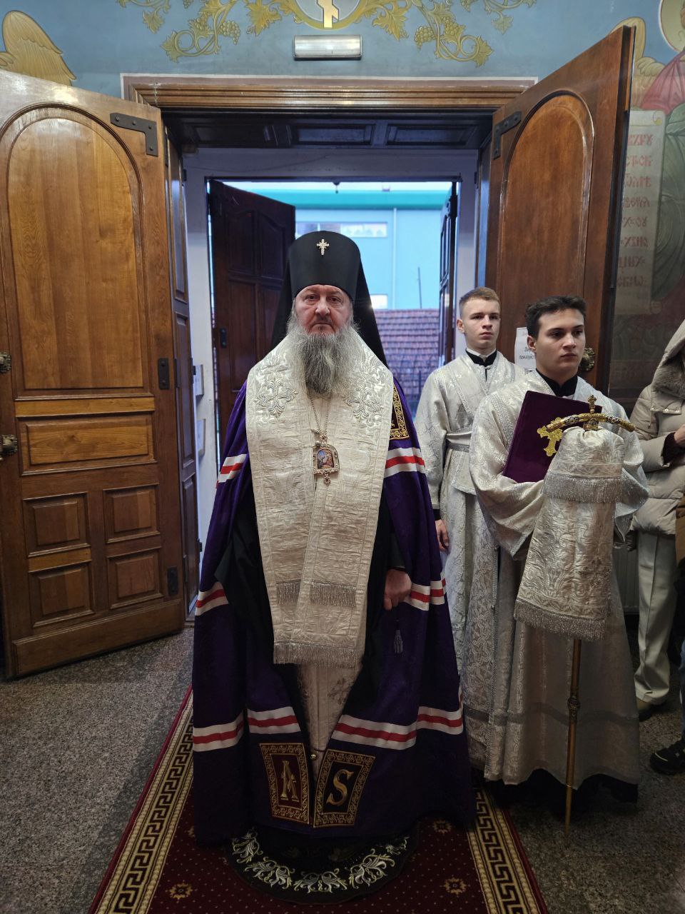 У святых врат обители Высокопреосвященнейшего Владыку встретил наместник монастыря архимандрит Паисий (Чекан), в сопровождении которого Архипастырь проследовал в зимний Успенский храм для совершения Божественной литургии.