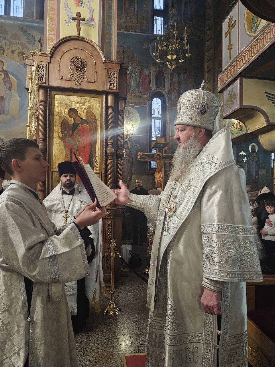 За богослужением Высокопреосвященнейшему Владыке сослужили клирики кафедрального собора Рождества Христова протоиерей Георгий Скобиль и протодиакон Сергий Афтени.