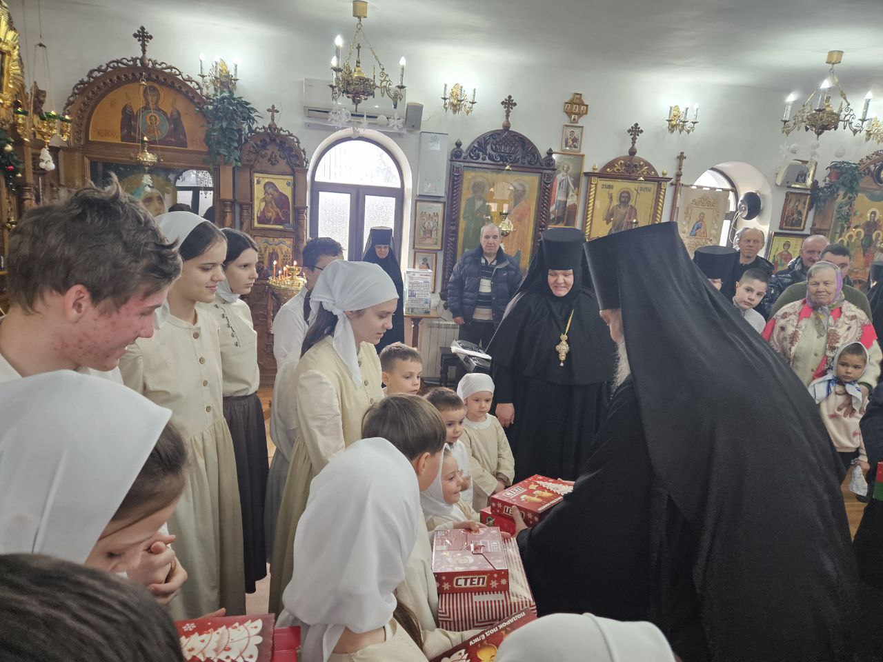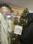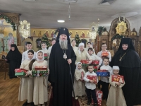 По завершении архиерейского слова воспитанники воскресной школы при монастыре представили Владыке, матушке игумении, сестрам обители и гостям рождественское выступление. Высокопреосвященнейший Владыка Савва тепло поблагодарил детей за старание, обратился к ним с назидательным словом и вручил каждому ребенку рождественский подарок, благословив их на дальнейший духовный рост и укрепление в вере.