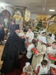 Владыка Савва тепло поблагодарил детей и педагогов воскресной школы за подготовленное выступление, обратился к юным участникам с назидательным словом и поздравил их со светлыми днями Святок. Затем Архипастырь вручил детям сладкие рождественские подарки.