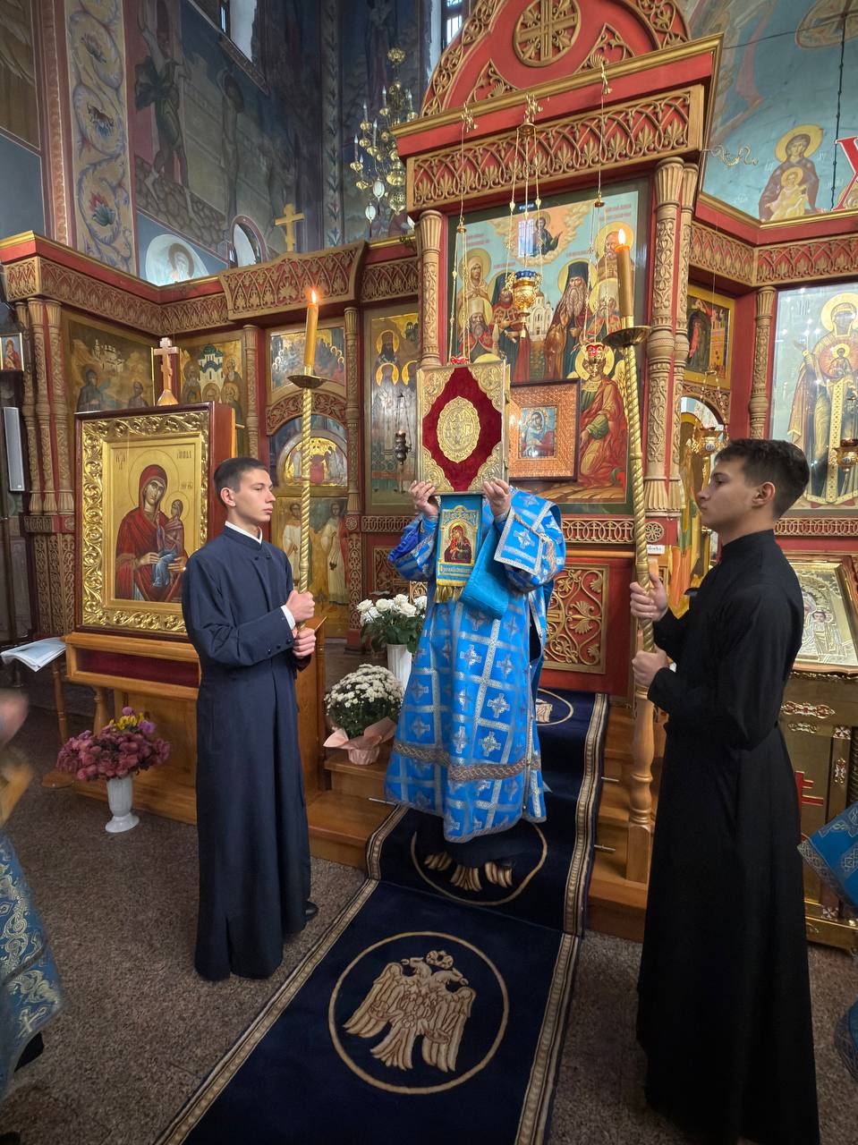 В кафедральном соборе архиерейским чином было совершено последование акафиста пред местночтимым образом Пресвятой Богородицы