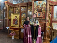 В завершение богослужения архиепископ Савва и духовенство совершили молебствие пред списком Иерусалимской иконы Пресвятой Богородицы, за которым поминались ктиторы и благотворители прихода. Владыка обратился к Царице Небесной со словами молитвы.