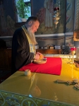После полиелея архиепископ Савва поздравил прихожан с наступающим праздником и помазал духовенство и мирян освящённым елеем.