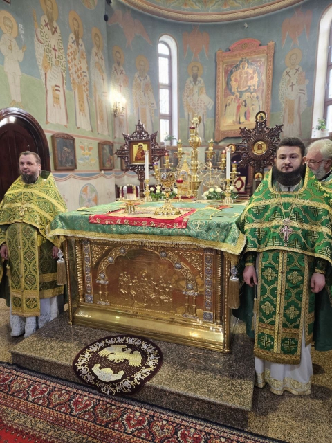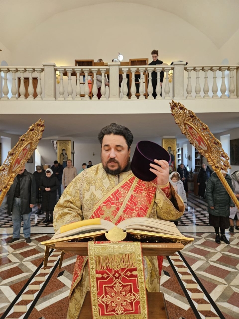Высокопреосвященнейшему Владыке настоятелю сослужили клирик храма иеромонах Иоанн (Трайто) и клирик кафедрального собора диакон Василий Донченко.