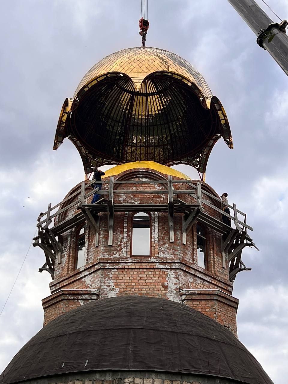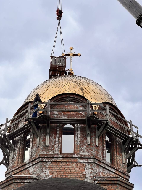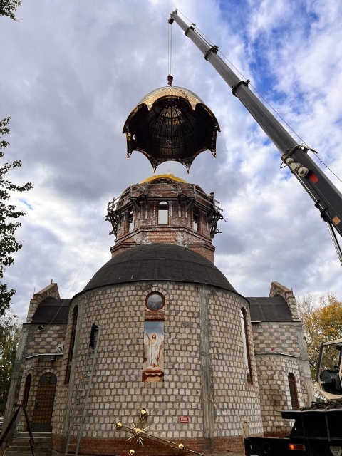 В селе Терновка освятили и водрузили купол и крест на строящийся храм.