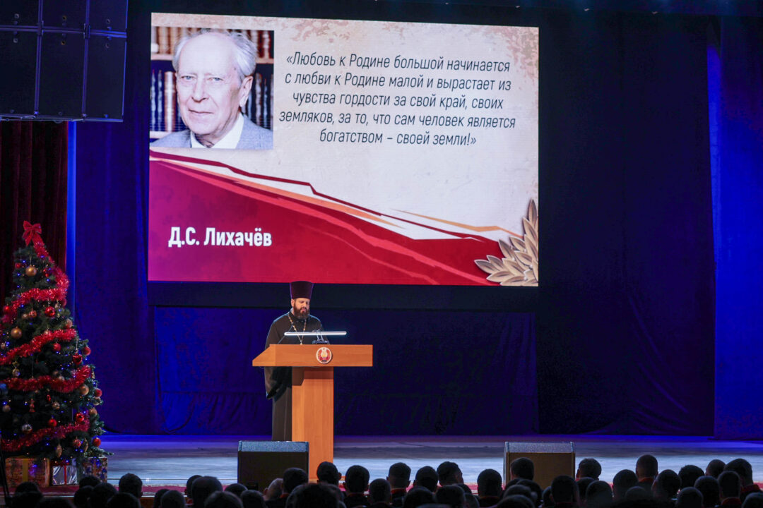 В торжествах также принял участие ответственный за духовное наставление личного состава иерей Георгий Кичка. Отец Георгий поздравил руководство и курсантов, напомнив о необходимости сочетать профессиональные знания с христианскими добродетелями, укреплять в себе чувство долга, честность, милосердие и уважение к человеку, которому призваны служить будущие сотрудники органов правопорядка.