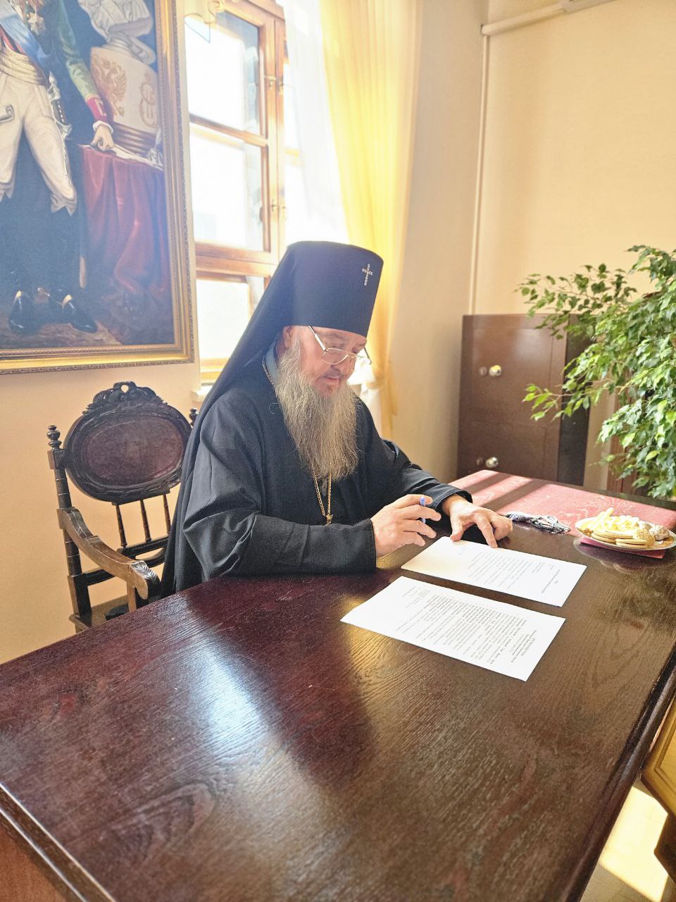 10 марта в рабочем кабинете Управляющего Тираспольско-Дубоссарской епархией состоялась рабочая встреча Его Высокопреосвященства архиепископа Тираспольского и Дубоссарского Саввы с министром обороны Приднестровской Молдавской Республики генерал-лейтенантом О. А. Обручковым.