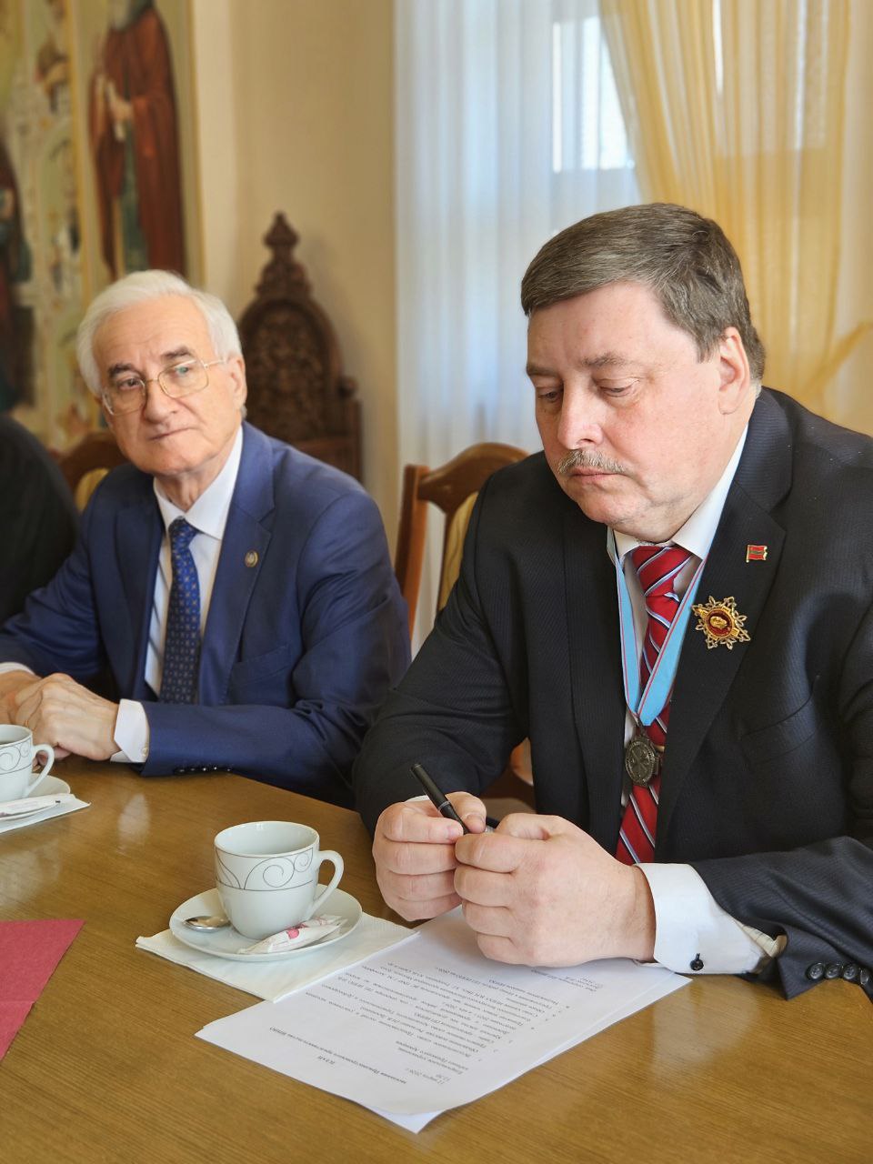 Открывая заседание, Высокопреосвященнейший архиепископ Савва, возглавляющий представительство ИППО в Приднестровье, вручил членские знаки и удостоверения новым участникам Общества – вице-спикеру Парламента ПМР Галине Михайловне Антюфеевой и благочинному Бендерского округа протоиерею Михаилу Лунгу.