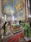 По завершении акафиста Его Высокопреосвященство вознёс молитву ко Пресвятой Богородице, после чего с благоговением поклонился образу Царицы Небесной. Вслед за этим перед началом Божественной литургии Архипастырь совершил проскомидийное поминовение о здравии и об упокоении духовных чад и всех православных христиан.