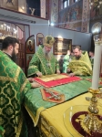 Высокопреосвященнейшему Владыке сослужили соборный причт, а также клирик храма Покрова Пресвятой Богородицы протоиерей Николай Чепель, настоятель храма Новомученников и исповедников Российских протоиерей Георгий Лесник и проходящий богослужебную практику иеродиакон Никанор (Цверкун).
