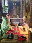 За богослужением, была совершена хиротония иеродиакона Никанора (Цверкуна) во иеромонаха.