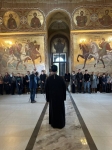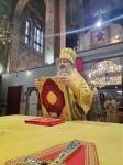 В завершение богослужения было совершено славление пред образом Воскресения Христова, после чего Высокопреосвященнейший Архипастырь обратился к прихожанам со словом архиерейской проповеди.