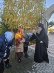 У храма Владыку встретил настоятель храма протоиерей Василий Кристя. Его Высокопреосвященство совершил чин освящение накупольного креста и купола, которые окропил святой водой.