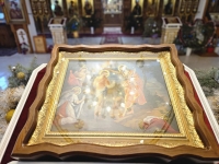 За богослужением Правящему Архиерею сослужили ключарь и клирики кафедрального собора. В храме молились многочисленные верующие, собравшиеся для совместной молитвы в преддверии великого двунадесятого праздника.