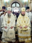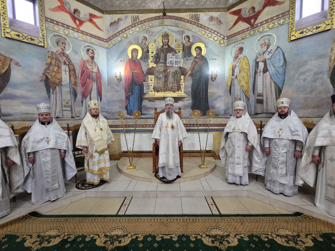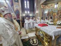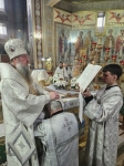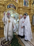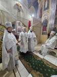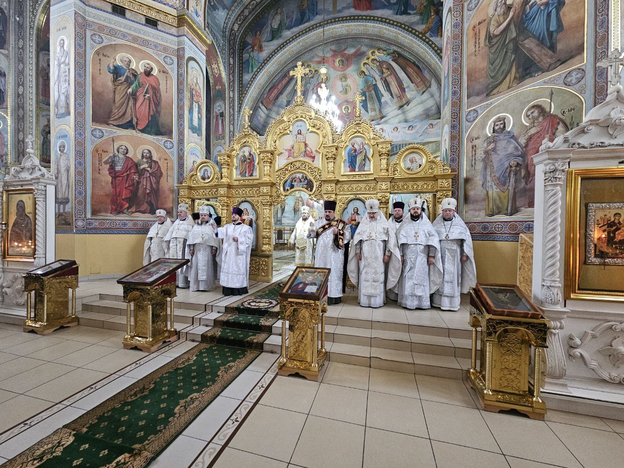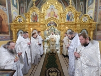 За богослужением Высокопреосвященнейшему Владыке настоятелю сослужили клирики кафедрального собора.