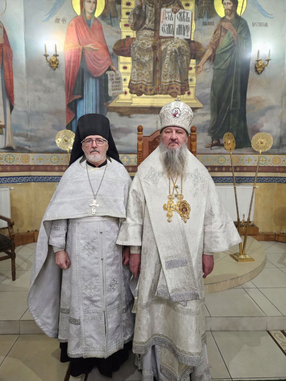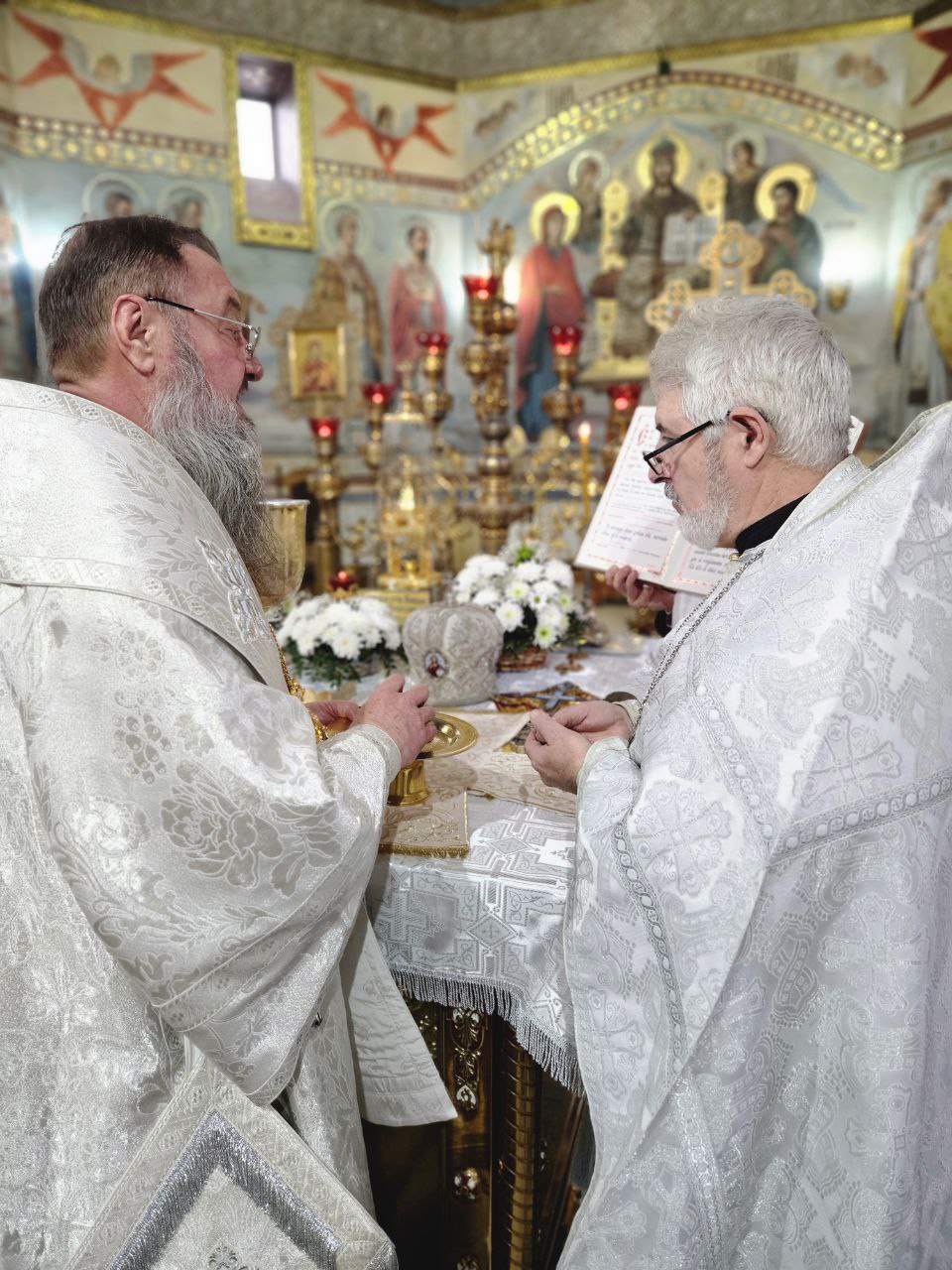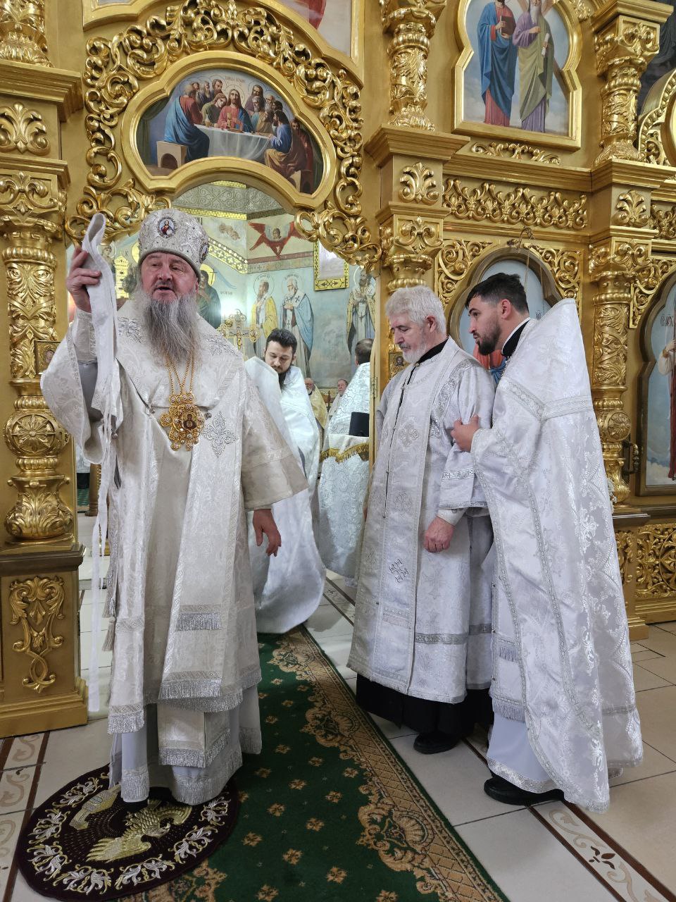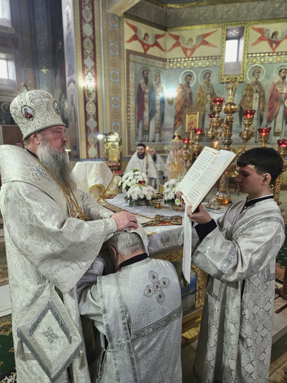 За богослужением Высокопреосвященнейший Владыка Савва совершил хиротонию клирика Михаило-Архангельского собора иеродиакона Лазаря (Сотникова) во пресвитера.
