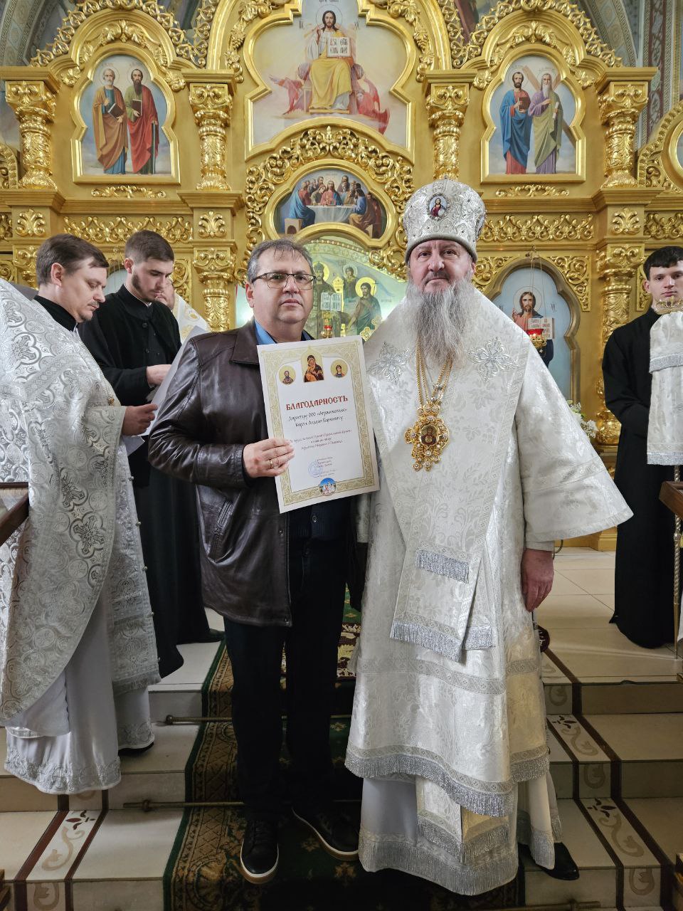 Клирик собора протоиерей Андрей Васкан к юбилейным датам со дня рождения и священнической хиротонии был награждён епархиальной медалью Архангела Михаила I степени, как и Обитоцкий Димитрий Григорьевич. Фишману Денису Александровичу и Кошулинскому Валерию Васильевичу архиепископ Савва вручил медали Покрова Пресвятой Богородицы. Благодарственные грамоты получили также труженики и благотворители прихода.
