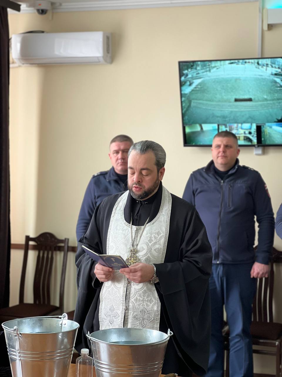 Отец Андрей совершил благодарственный молебен, вознёс молитвы о ниспослании Божиего благословения на сотрудников подразделения и их служение, а также окропил святой водой присутствовавших, рабочие кабинеты и помещения, благословив всех на добросовестное несение служебных обязанностей.