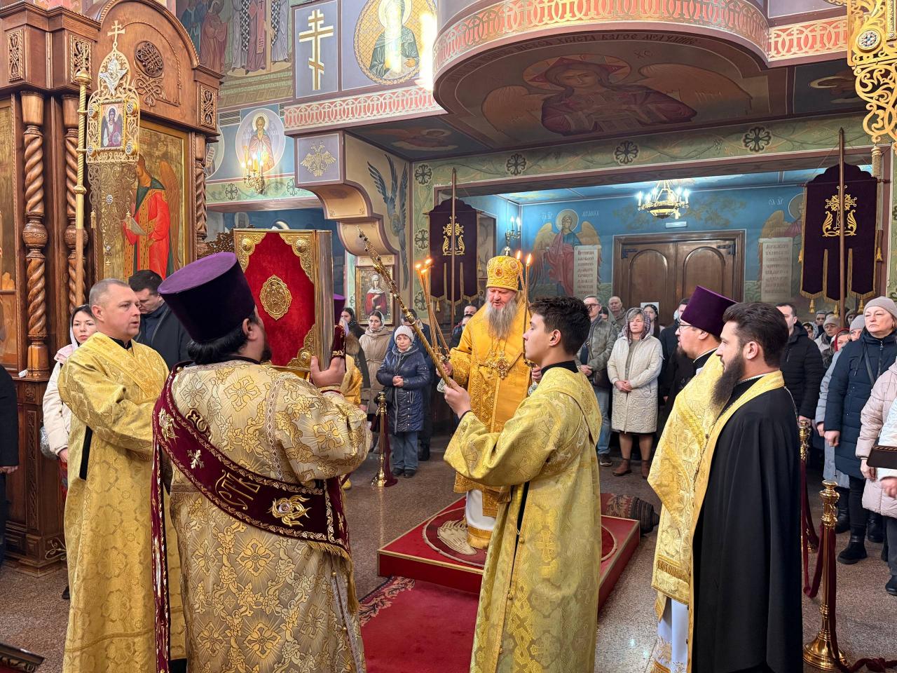 В завершение богослужения архиепископ Савва обратился к молящимся с назидательным архипастырским словом, напомнив о духовном значении великопостного подвига и примере святого великомученика Феодора, явившего верность Христу и заботу о Церкви даже после своей мученической кончины.