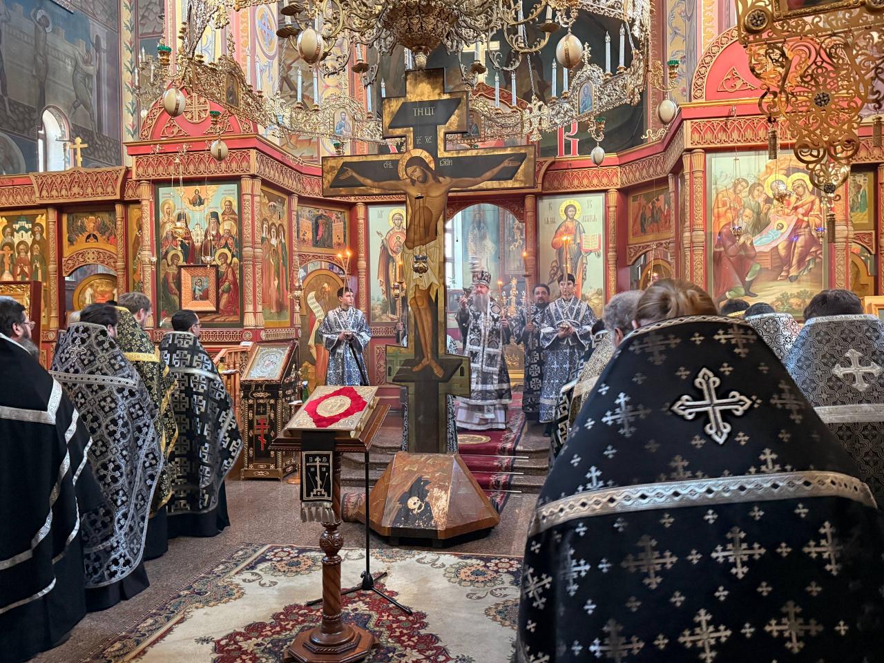 Архипастырю сослужили благочинный протоиерей Сергий Вербицкий и клирики Центрального благочиннического округа епархии. За богослужением был прочитан посвящённый Страстям Христовым отрывок из Евангелия от святого апостола и евангелиста Матфея. В завершение великопостной службы Архипастырь, духовенство и верующие перед вынесенным на середину храма Распятием с благоговением поклонились Господу Иисусу Христу, пострадавшему за спасение мира.