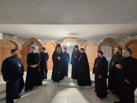 По завершении богослужения Его Высокопреосвященство архиепископ Савва, настоятель собора архимандрит Виктор (Саяпин) и гости осмотрели нижний храм во имя прп. Маркелла, игумена обители «Неусыпающих», где сейчас проводятся ремонтно-реставрационные работы.