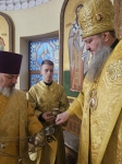 В завершение богослужения было совершено славление, после чего Высокопреосвященнейший Владыка окропил святой водой молившихся в храме. Архиепископ Савва поздравил участников богослужения с престольным торжеством и преподал всем архипастырское благословение.