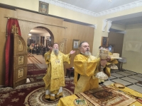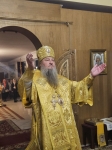 На полиелее Высокопреосвященнейшим Владыкой был прочитан положенный в дни памяти святителей отрывок из Евангелия от Иоанна (Ин. 10:1–9), после чего Архипастырь обратился к прихожанам, поздравив их с наступающим днём престольного праздника. Затем архиепископ Савва помазал святым елеем сослужившее духовенство и мирян.