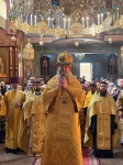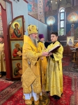 Высокопреосвященнейшему Владыке сослужили ключарь и соборные клирики. Богослужебные песнопения Литургии молитвенно и проникновенно исполнил хор кафедрального собора под управлением протодиакона Вячеслава Лукановского.