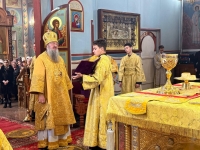 За богослужением Высокопреосвященнейшему Владыке сослужили клирики кафедрального собора. В храме собрались многочисленные верующие, пришедшие вознести молитвы и приступить к Таинству Причащения в первый воскресный день Великого поста.