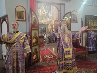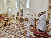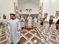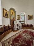 Его Высокопреосвященству сослужили ключарь кафедрального собора протоиерей Павел Кузменых, клирик храма иеромонах Иоанн (Трайто) и клирик кафедрального собора протодиакон Сергий Афтени.