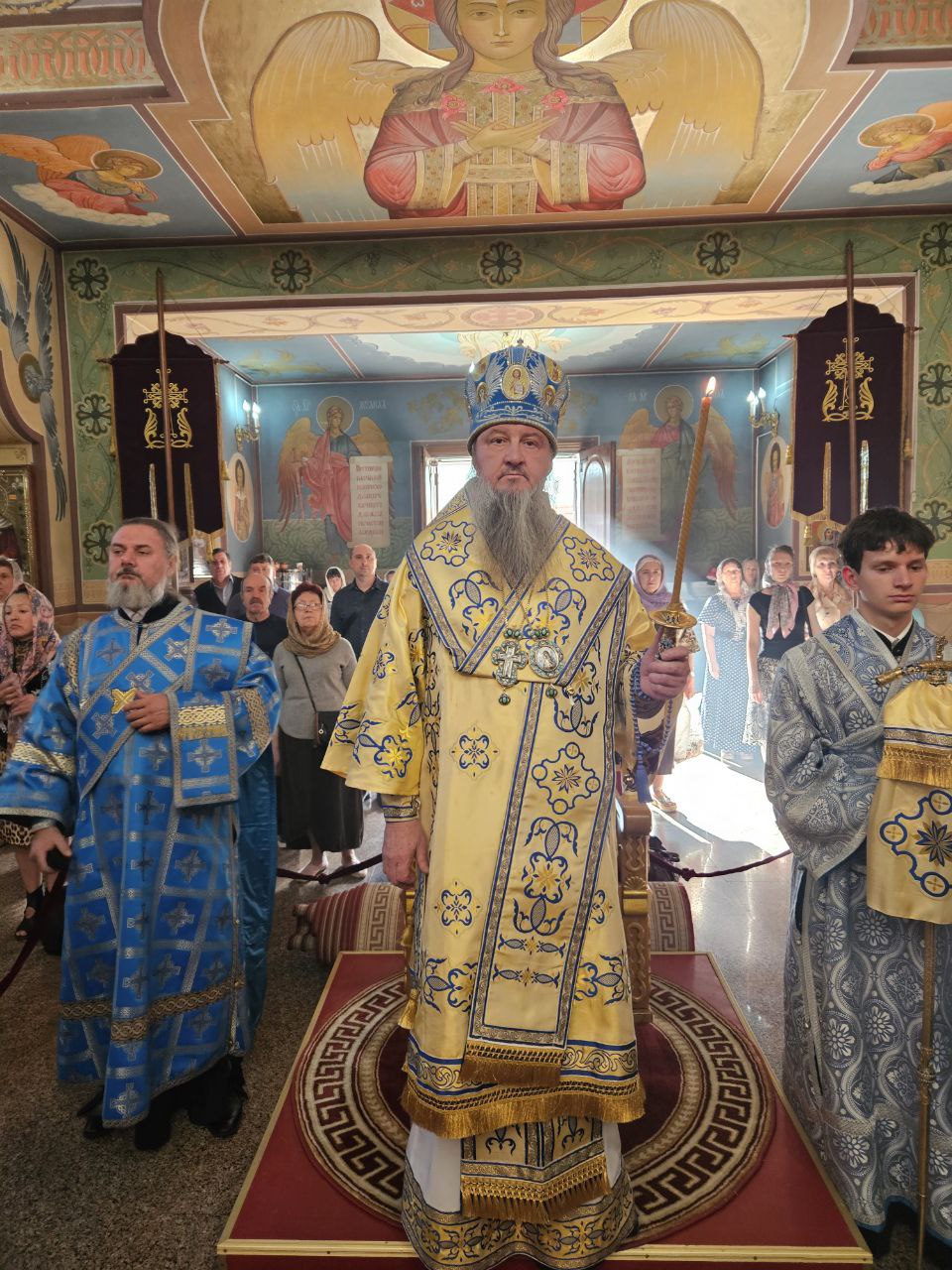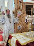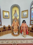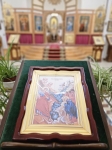 По отпусте Божественной литургии духовенство во главе с Владыкой совершило славление ныне прославляемому Церковью Архистратигу Божию Михаилу пред его честны́м образом.
