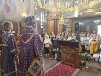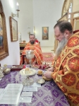 Его Высокопреосвященство также огласил расписание богослужений на предстоящую седмицу и совершил помазание освящённым елеем духовенства и всех молившихся за богослужением.