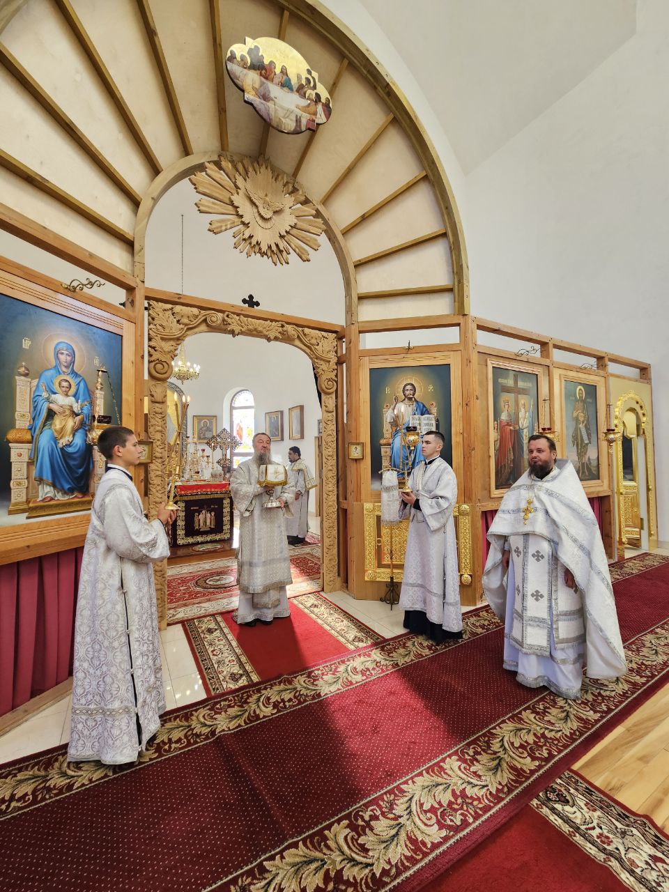 По отпусте Божественной литургии было совершено славление пред образом Воскресения Христова, вознесены молитвы о здравии и благоденствии ктиторов, благотворителей и прихожан Воздвиженского прихода.