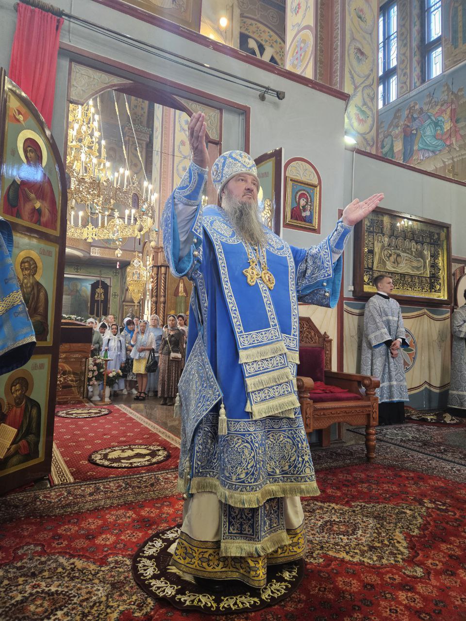 Завершая богослужение, Его Высокопреосвященство поздравил духовенство и паству с великим праздником и призвал всех верующих искать в молитвенном общении с Божией Матерью силы и утешения в жизненных испытаниях, с верой и надеждой идти путем спасения.