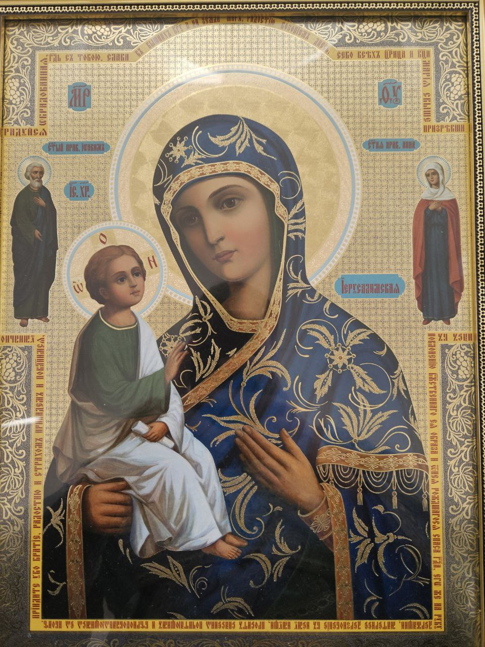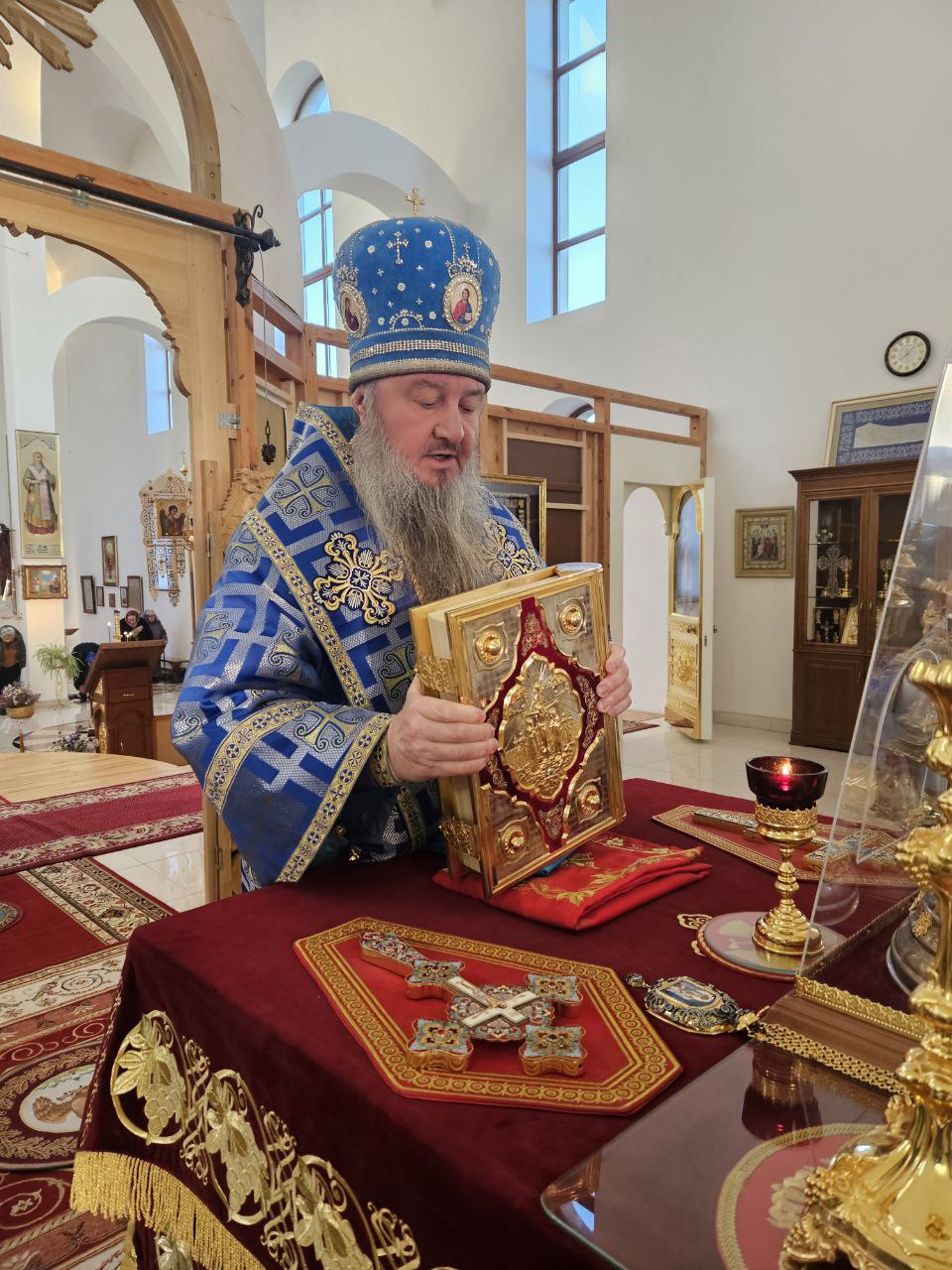 В завершение богослужения архиепископ Савва и духовенство совершили молебствие пред списком Иерусалимской иконы Пресвятой Богородицы, за которым поминались ктиторы и благотворители прихода. Владыка обратился к Царице Небесной со словами молитвы.