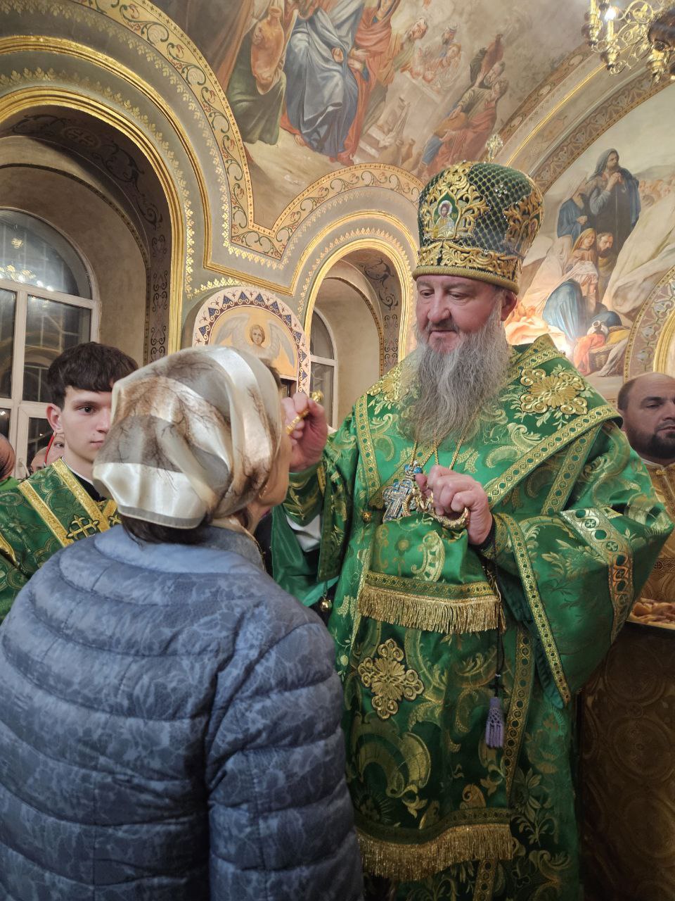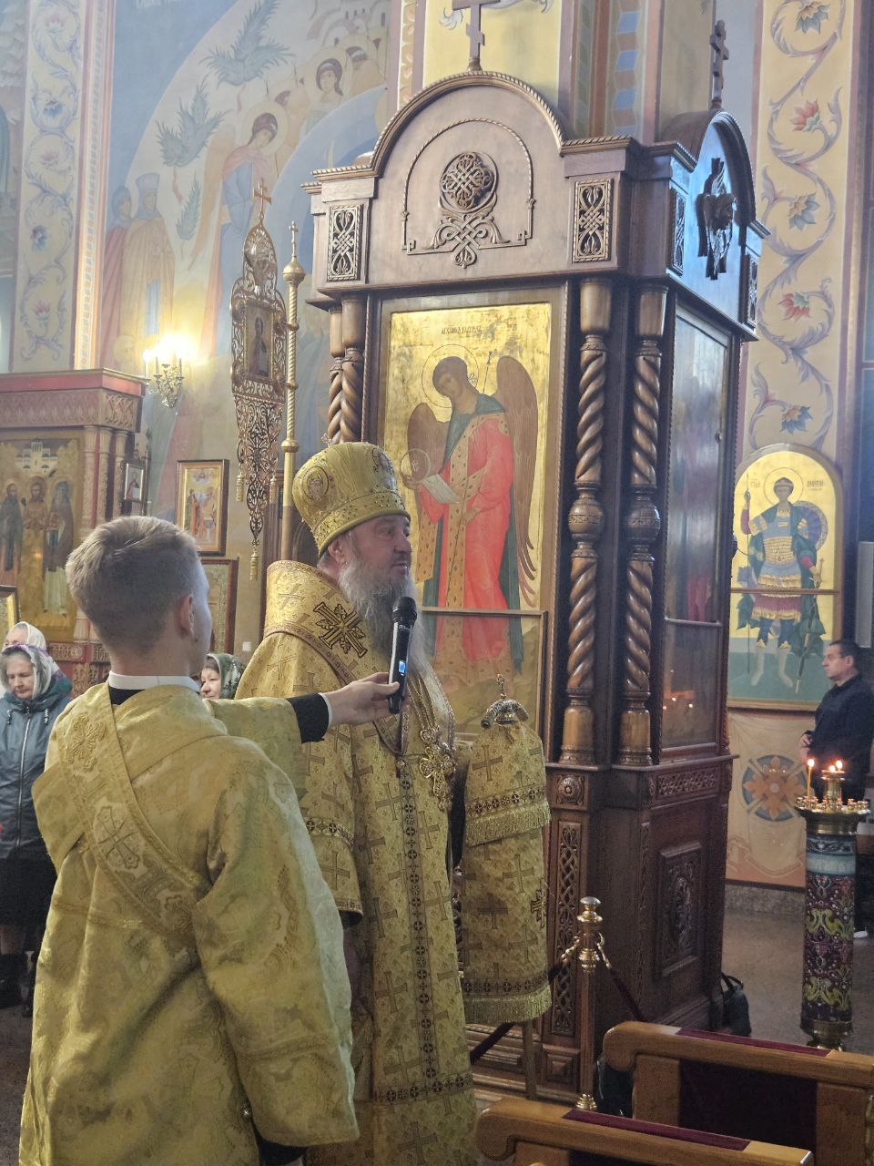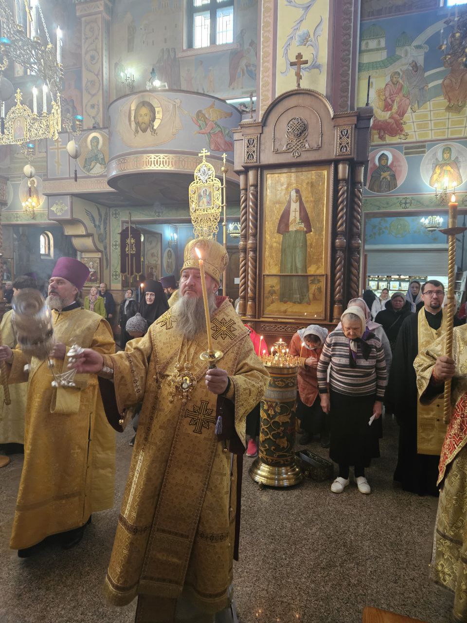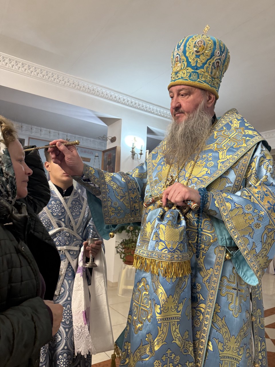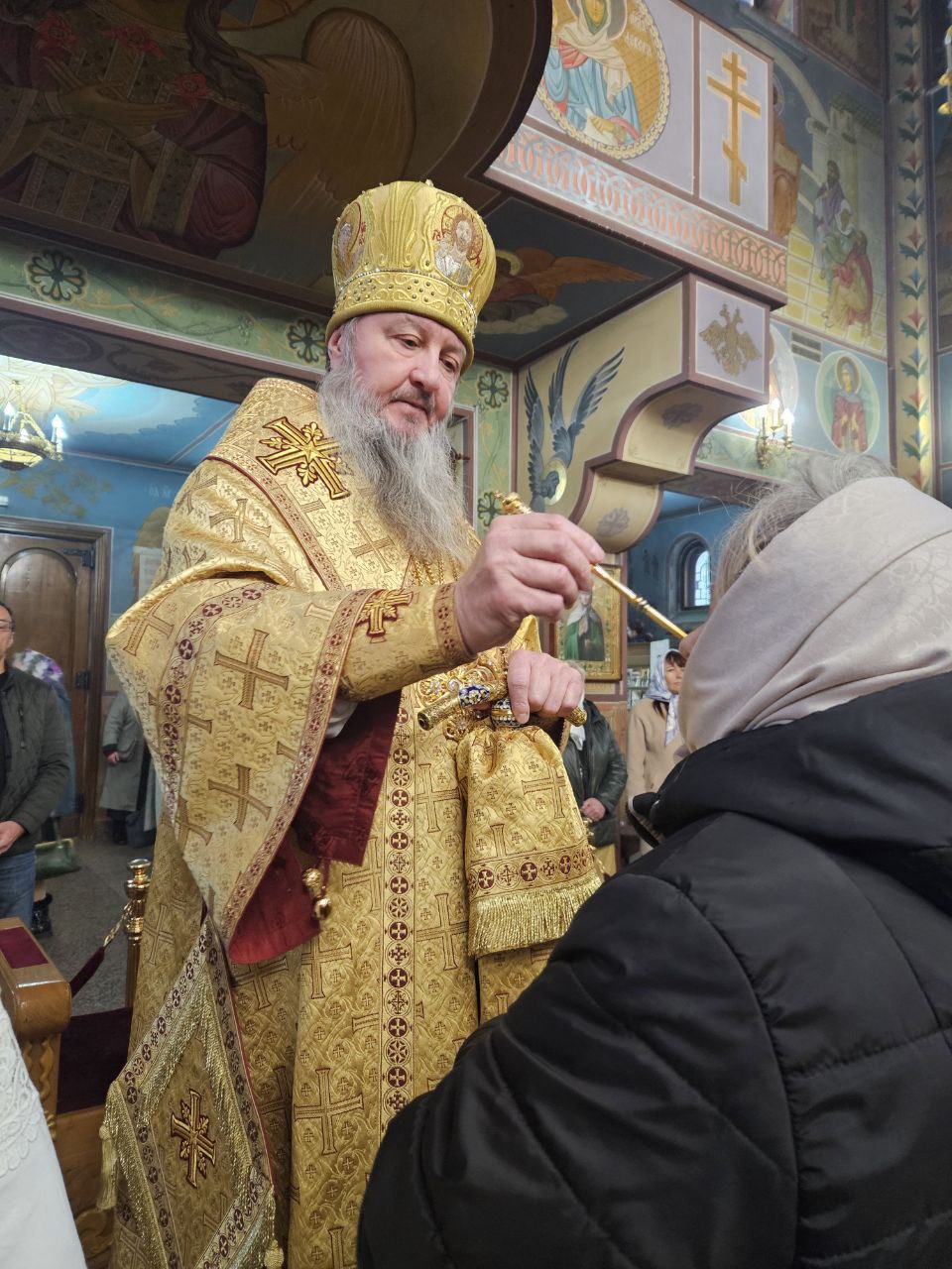 После полиелея архиепископ Савва поздравил прихожан с наступающим праздником и помазал духовенство и мирян освящённым елеем.