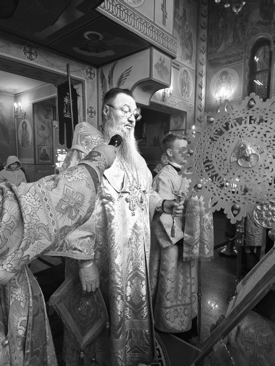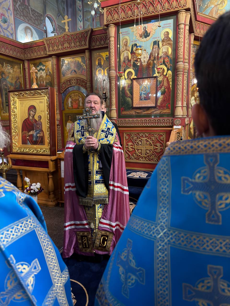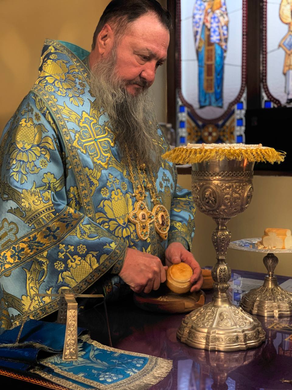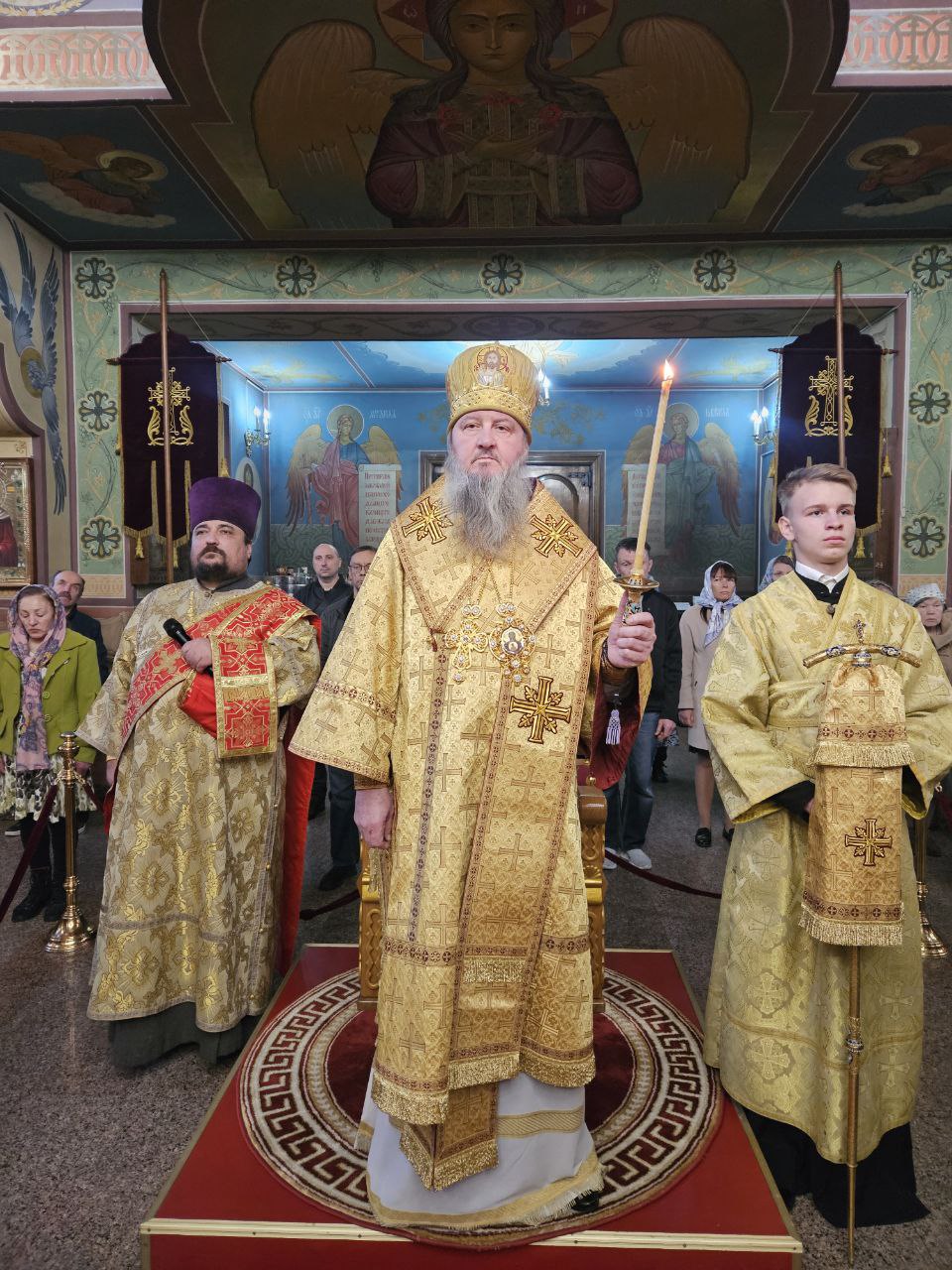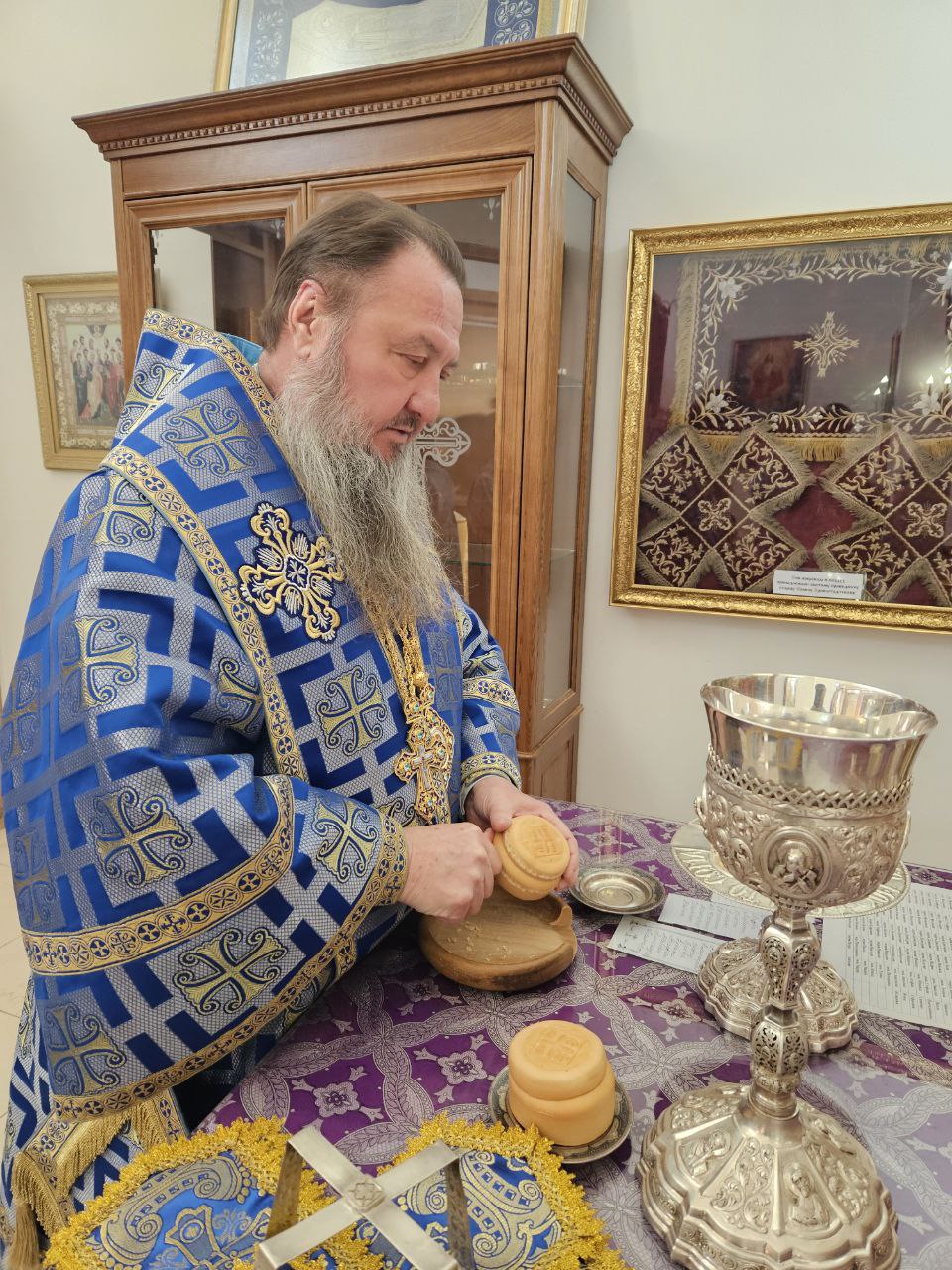 После полиелея архиепископ Савва поздравил прихожан с наступающим праздником и помазал духовенство и мирян освящённым елеем.