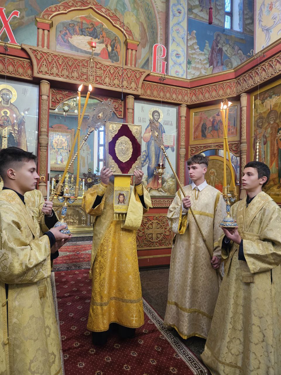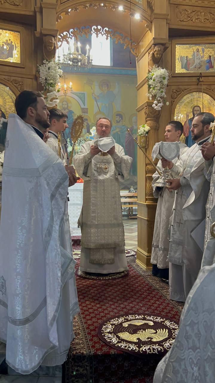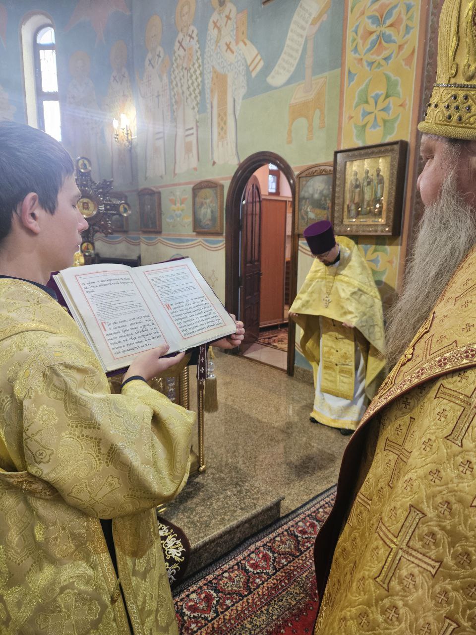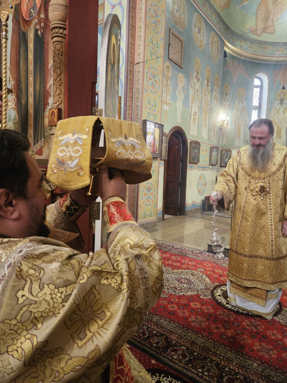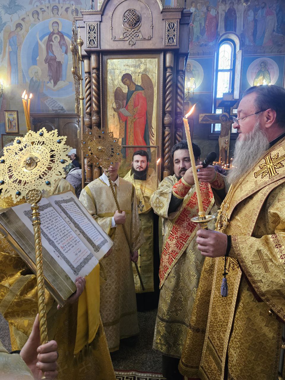 Правящему Архиерею сослужили клирик прихода иеромонах Иоанн (Трайто), проходящий богослужебную практику иеромонах Никанор (Цверкун) и клирик кафедрального собора протодиакон Сергий Афтени.