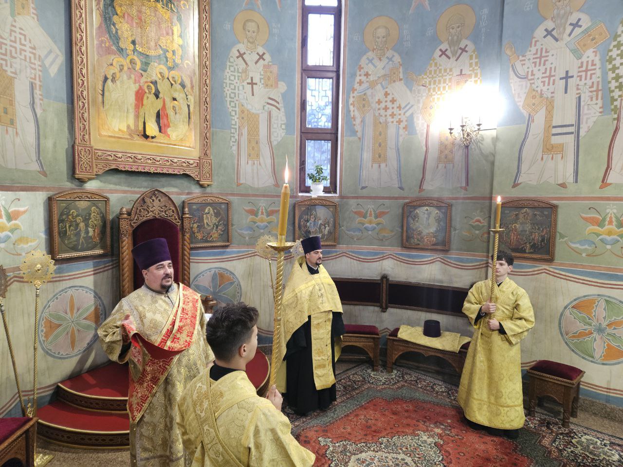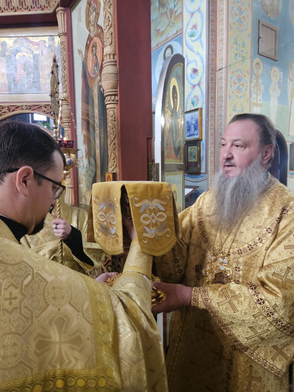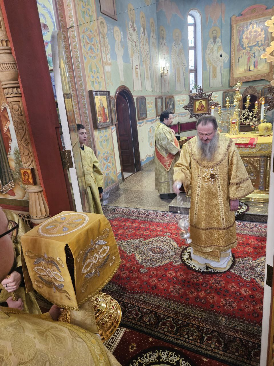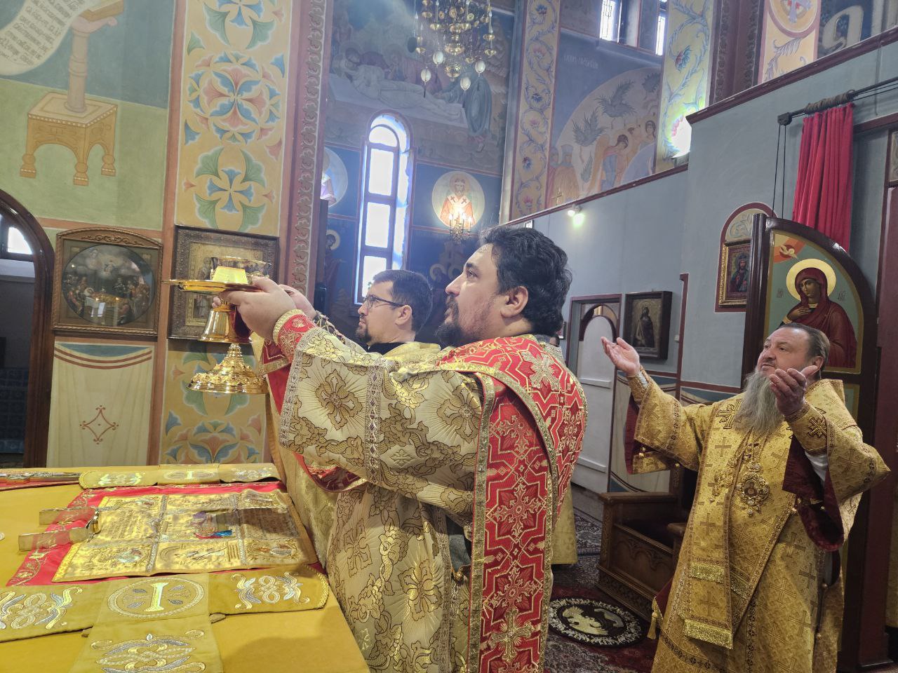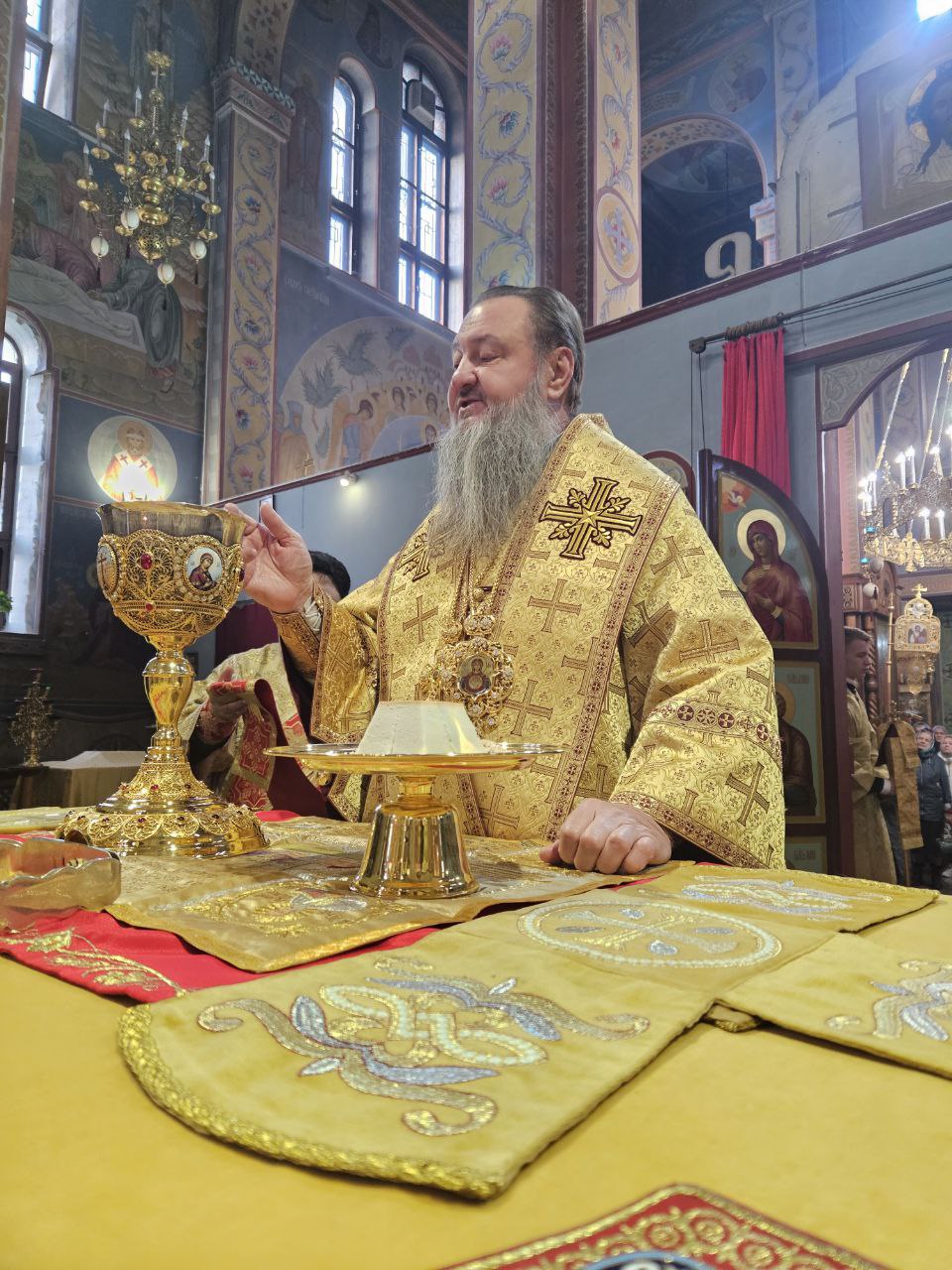 Правящему Архиерею сослужили клирик прихода иеромонах Иоанн (Трайто), проходящий богослужебную практику иеромонах Никанор (Цверкун) и клирик кафедрального собора протодиакон Сергий Афтени.