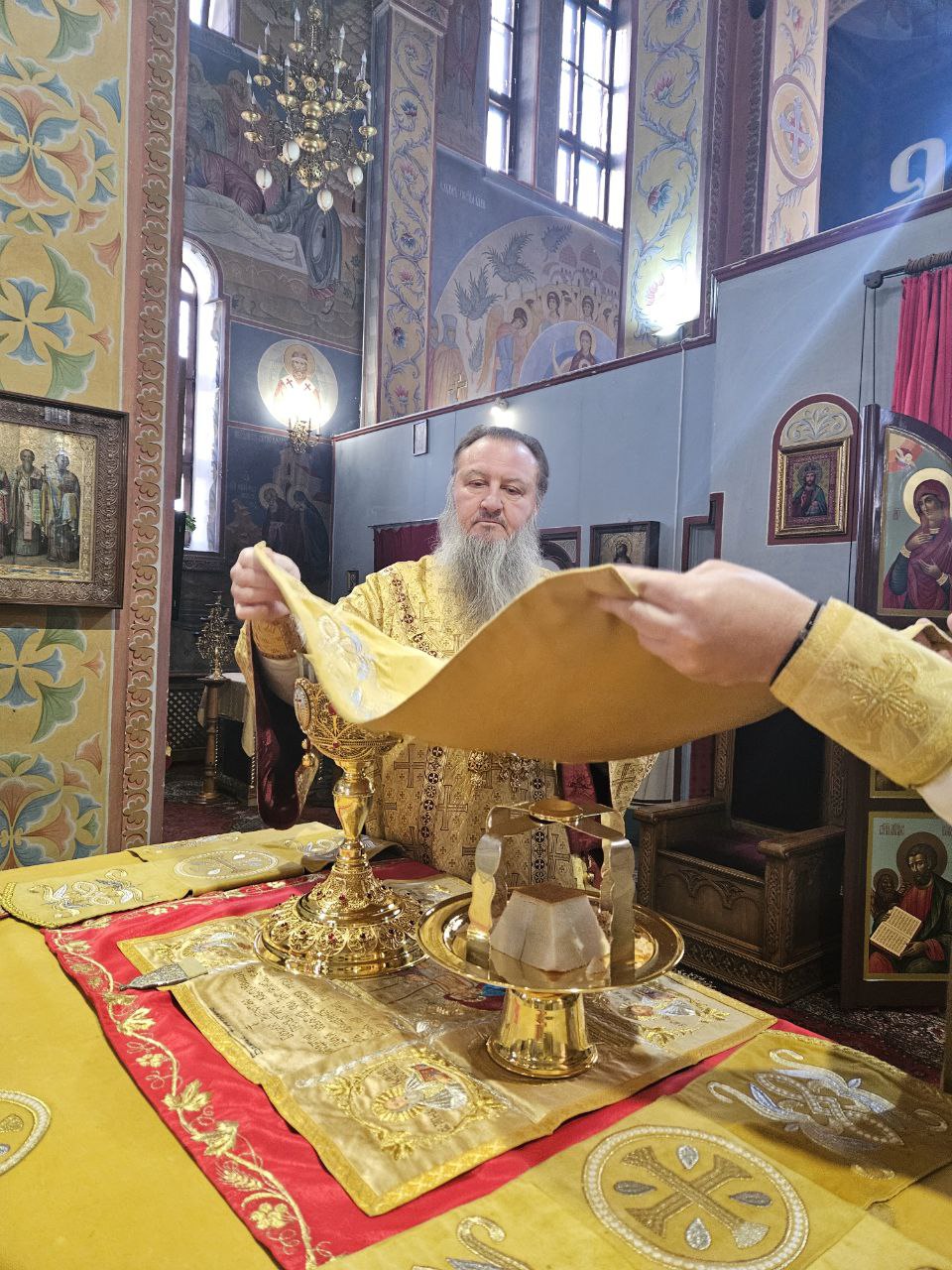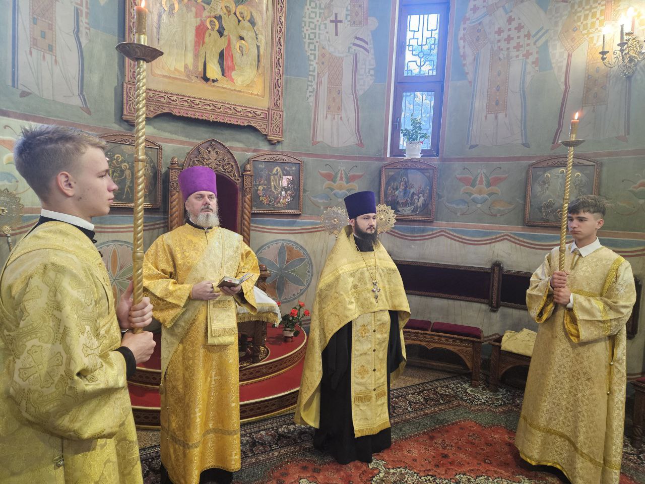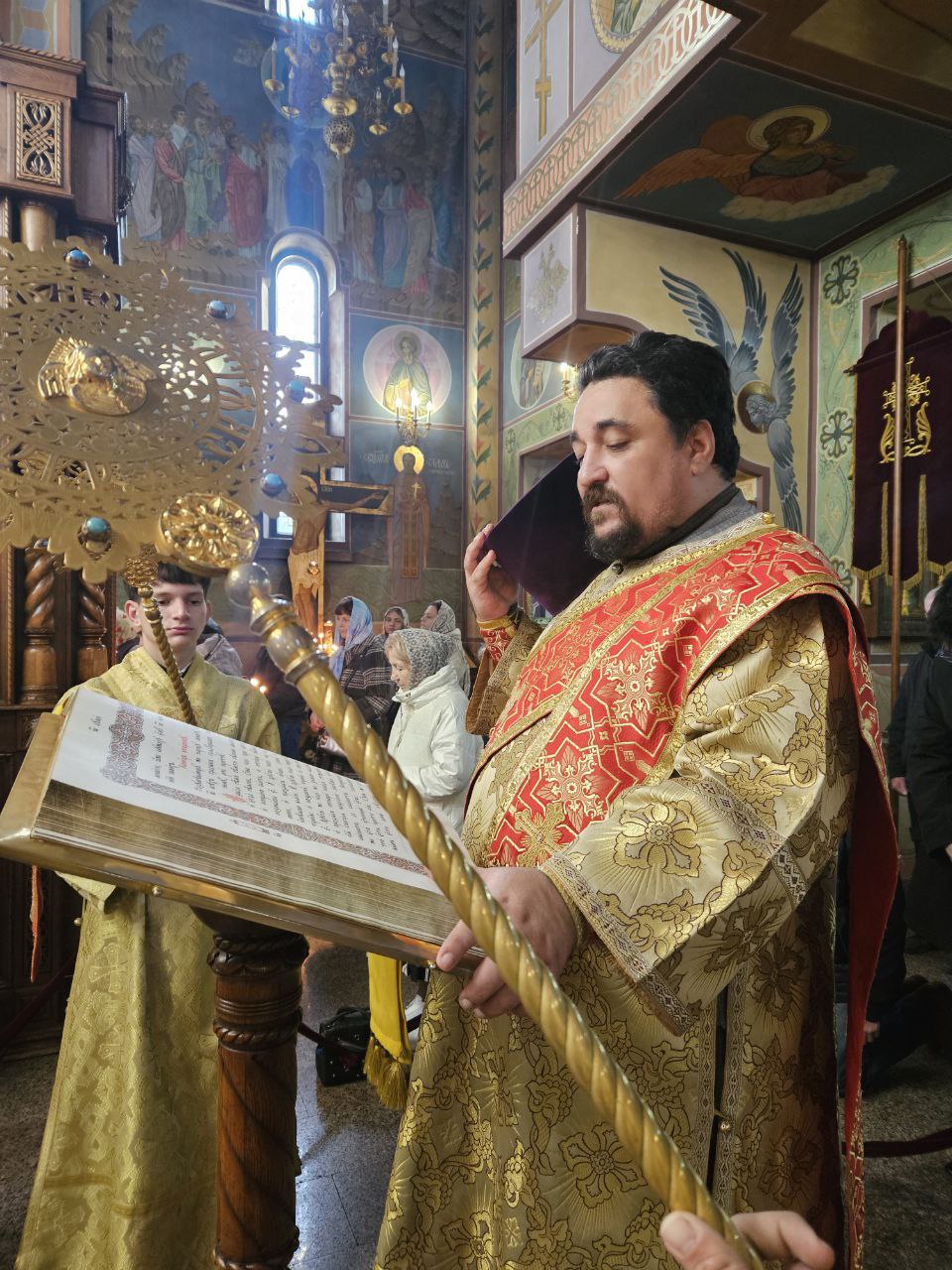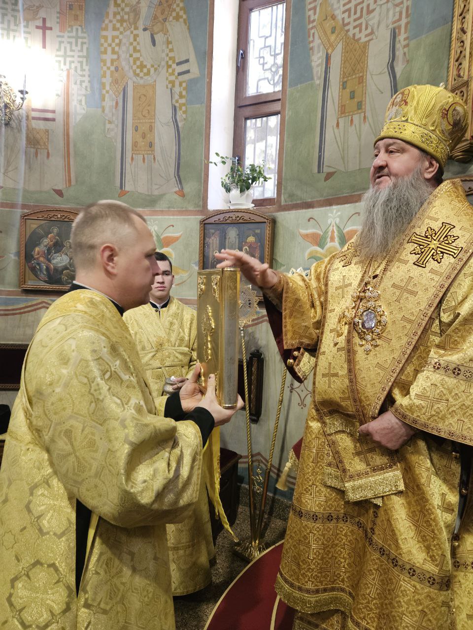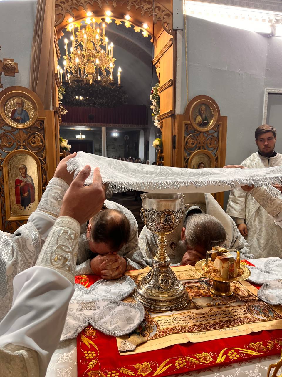 Правящему Архиерею сослужили клирик прихода иеромонах Иоанн (Трайто), проходящий богослужебную практику иеромонах Никанор (Цверкун) и клирик кафедрального собора протодиакон Сергий Афтени.