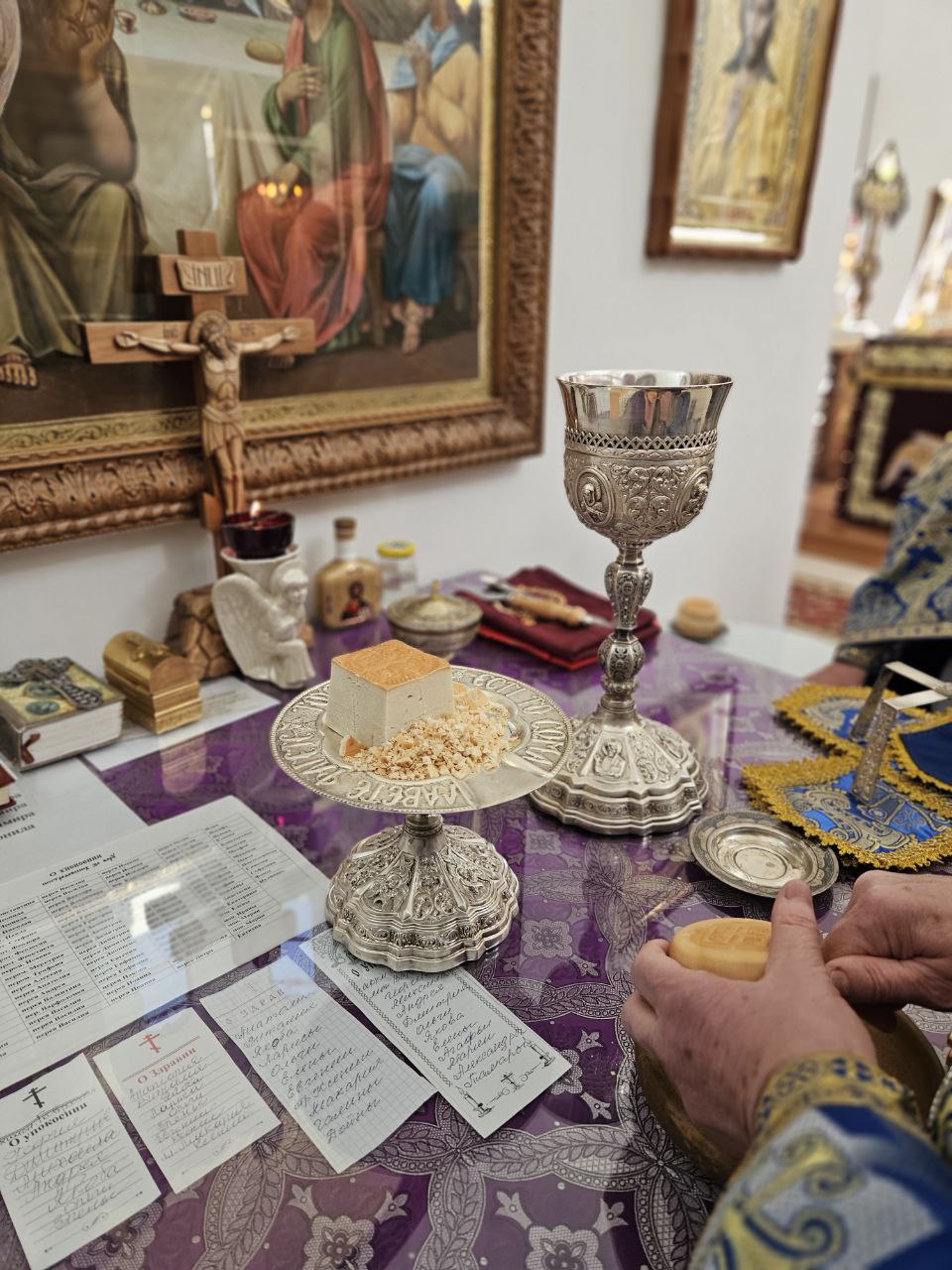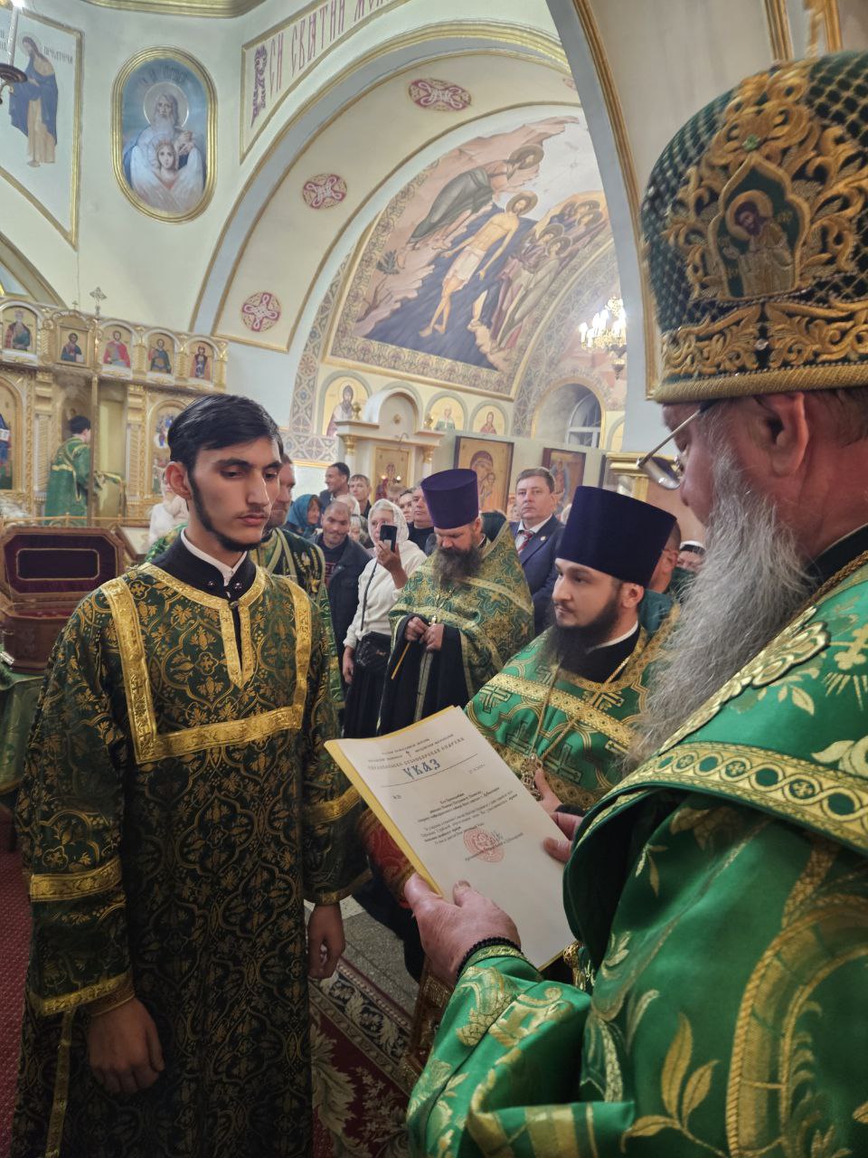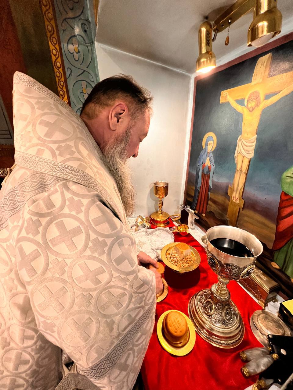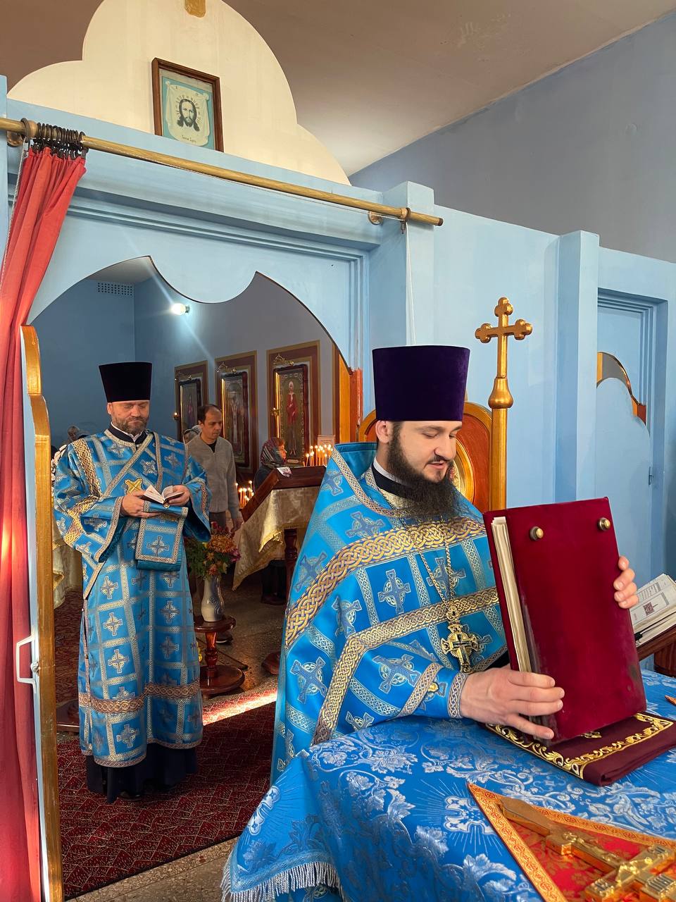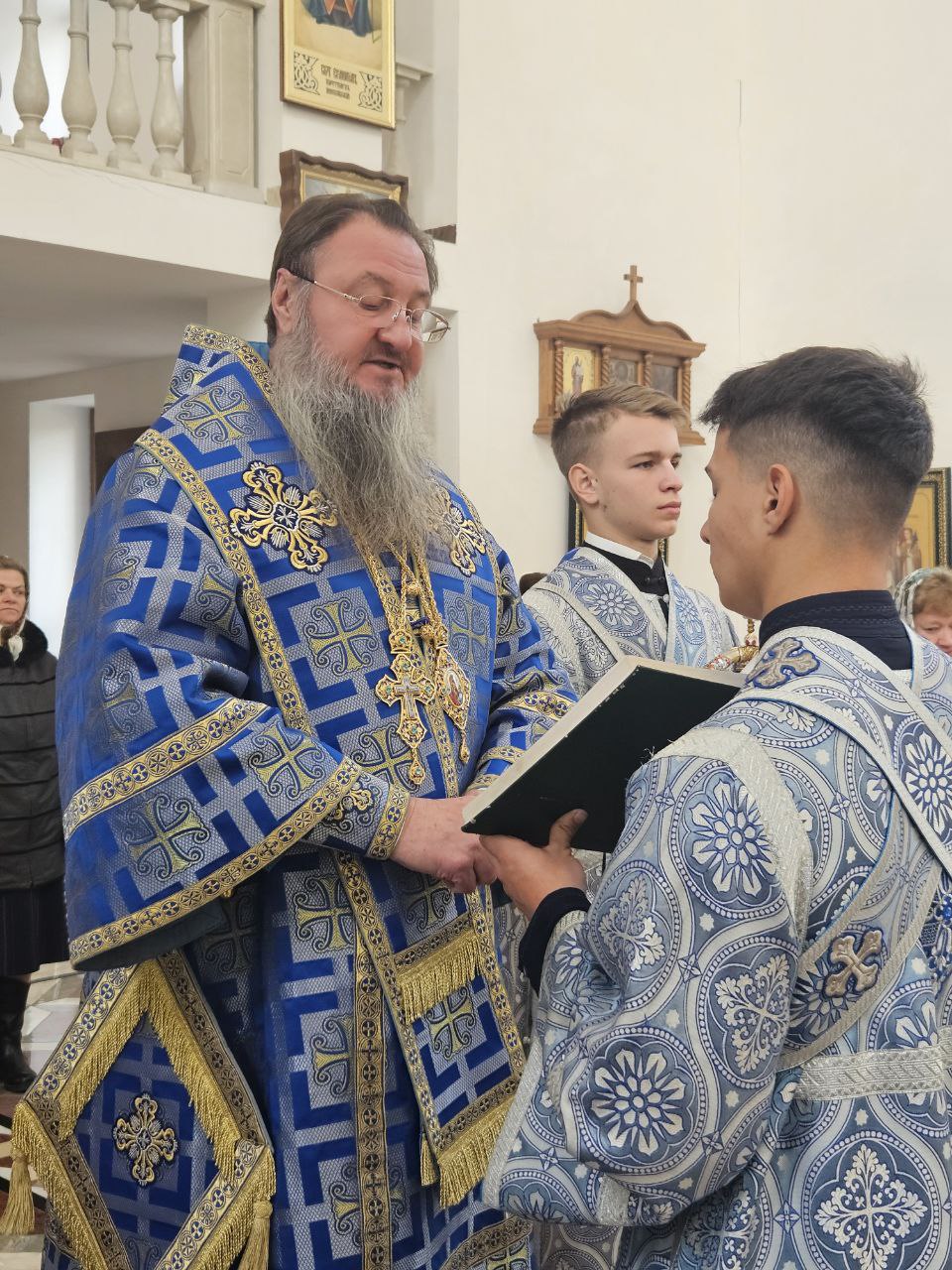 Правящему Архиерею сослужили клирик прихода иеромонах Иоанн (Трайто), проходящий богослужебную практику иеромонах Никанор (Цверкун) и клирик кафедрального собора протодиакон Сергий Афтени.